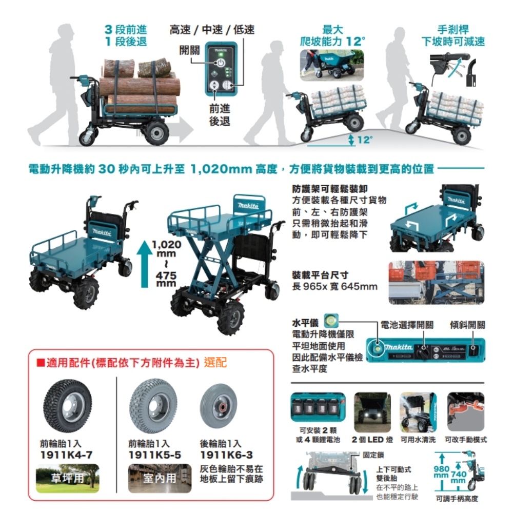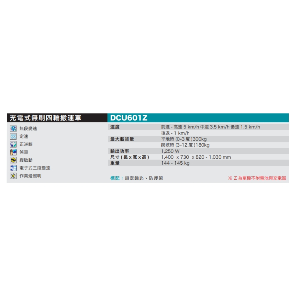 MAKITA牧田 DCU601Z 充電式無刷四輪搬運車 無電池 無充電器