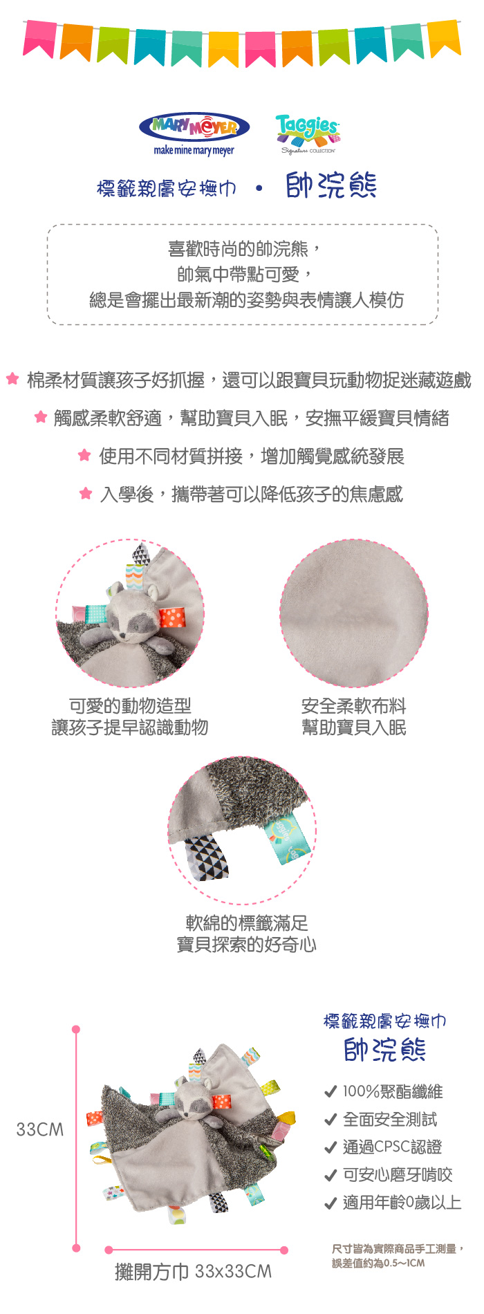 ●微笑樹懶-慵懶的肢體搭配超可愛的表情,療癒了媽媽,逗樂了寶寶,就要被融化了●許多彩色的緞帶標籤讓人愛不釋手●探索標籤提供寶寶觸感的刺激●刺激發育,有效的安撫寶寶●安全柔軟布料●纖細柔軟不傷害寶寶柔嫩肌膚