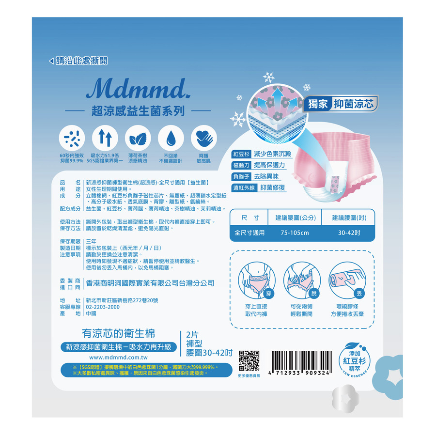 Mdmmd.超涼感益生菌褲型衛生棉
