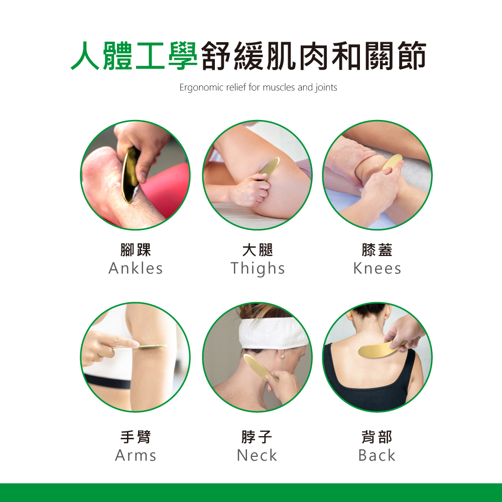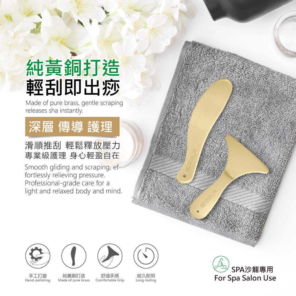 純黃銅製造:高品質黃銅打造,快速導熱提升刮痧按摩效果。