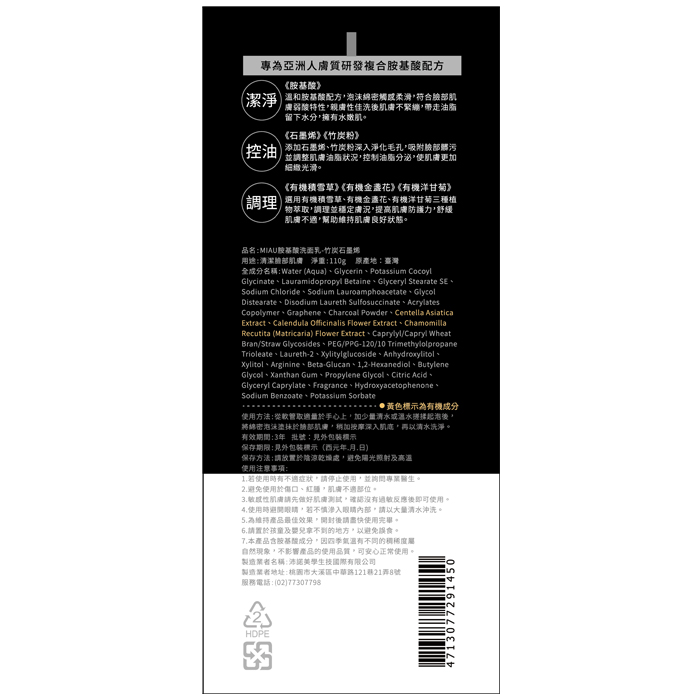 MIAU胺基酸洗面乳-竹炭石墨烯110g