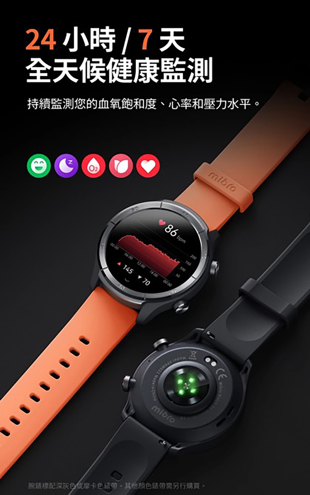 全天候健康監測 — 專業運動模式,隨時追蹤心率、睡眠與健康狀態