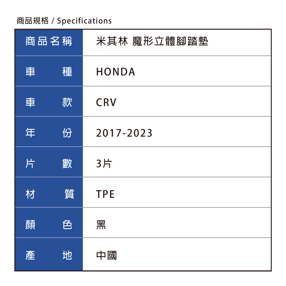 MICHELIN 米其林 本田 HONDA CRV 2017-23 全包式立體腳踏墊