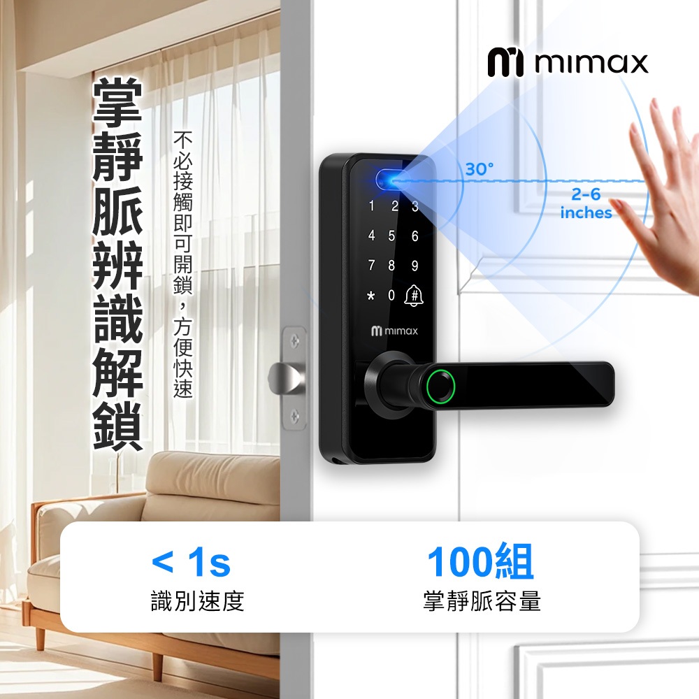 mimax 米覓 人臉掌靜脈智慧門鎖 房間專用 免開孔