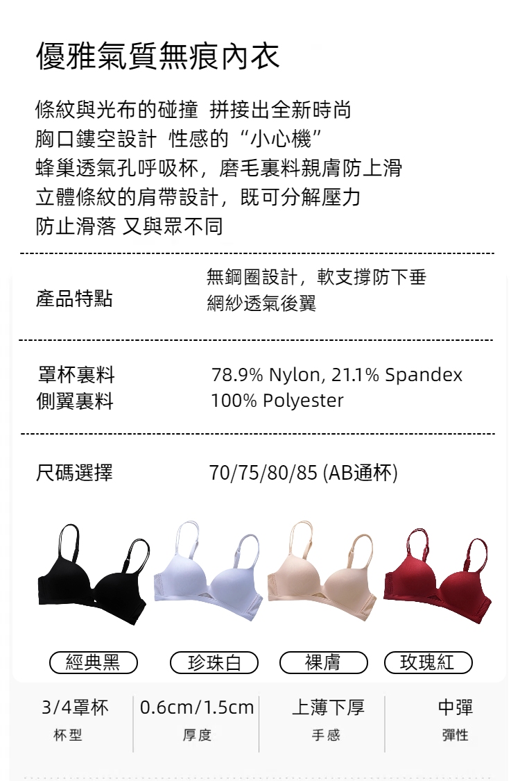 [Miraia米婡雅]優雅氣質無痕內衣 (車縫工藝、無痕透氣、集中托高)