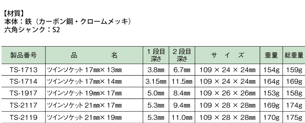 [MKK]日本原裝 雙尺寸套筒 19mm(6角)x17mm(12角)/TS-1917
