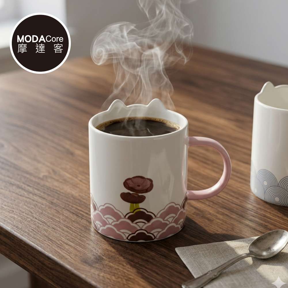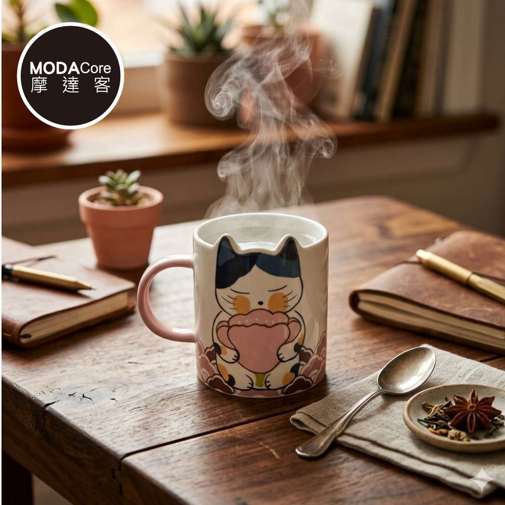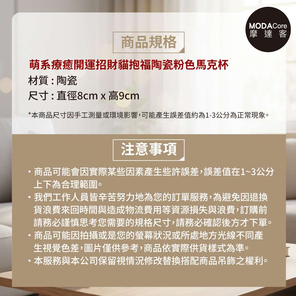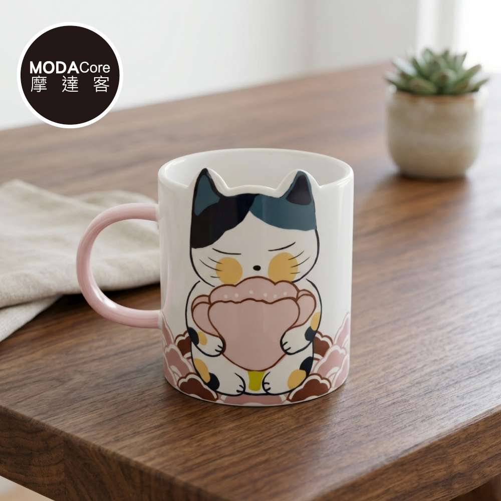 【摩達客】◉開運招財◉萌系療癒開運招財貓抱福陶瓷粉色馬克杯
