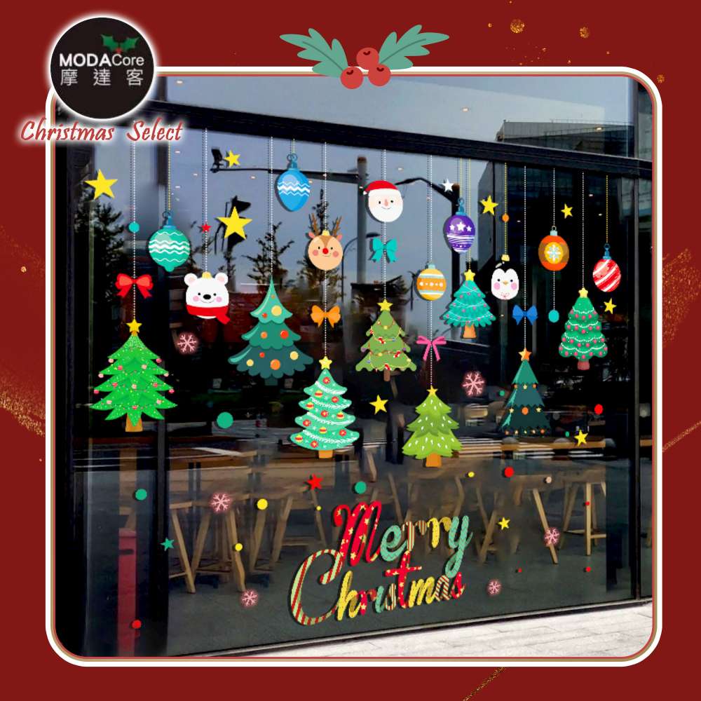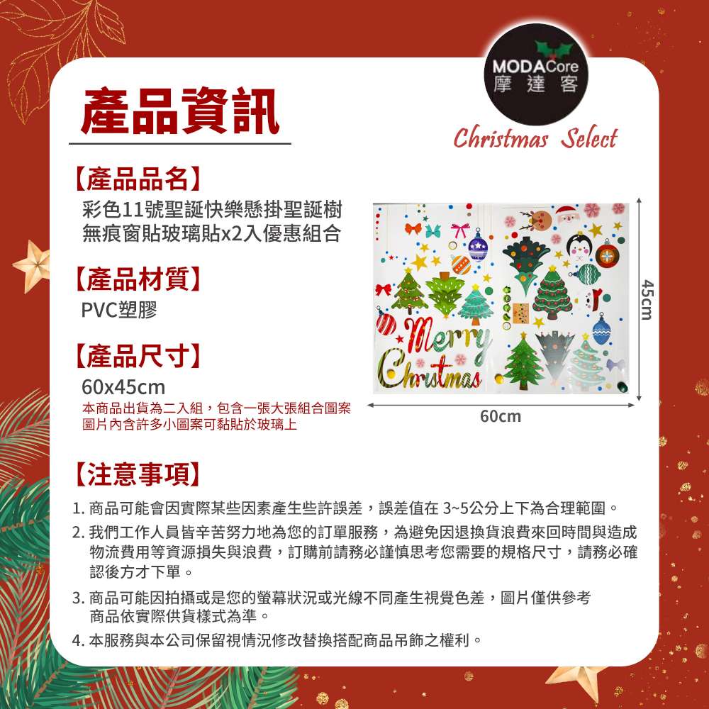 摩達客耶誕-彩色11號聖誕快樂懸掛聖誕樹-無痕窗貼玻璃貼*2入優惠組合