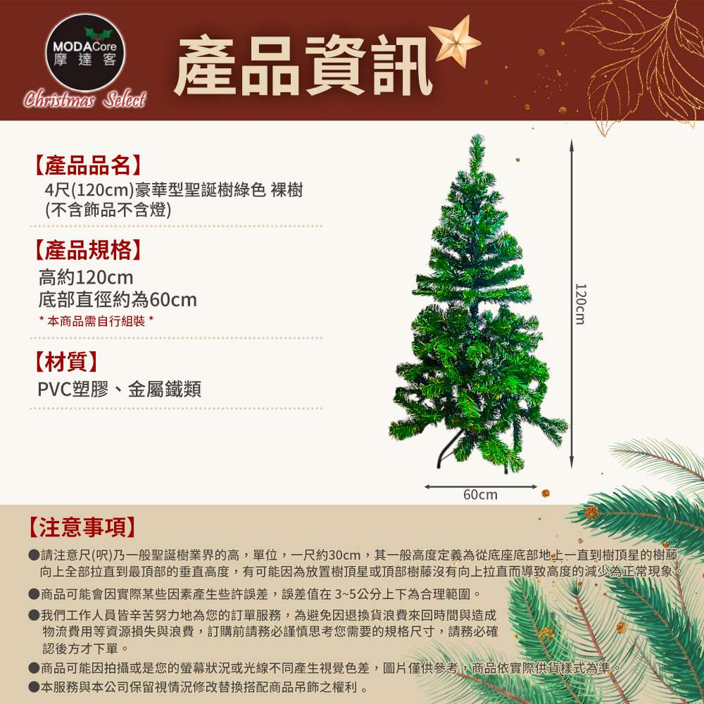 摩達客耶誕-台灣製豪華型4尺/120cm經典綠色聖誕樹裸樹/不含飾品不含燈/本島免運費