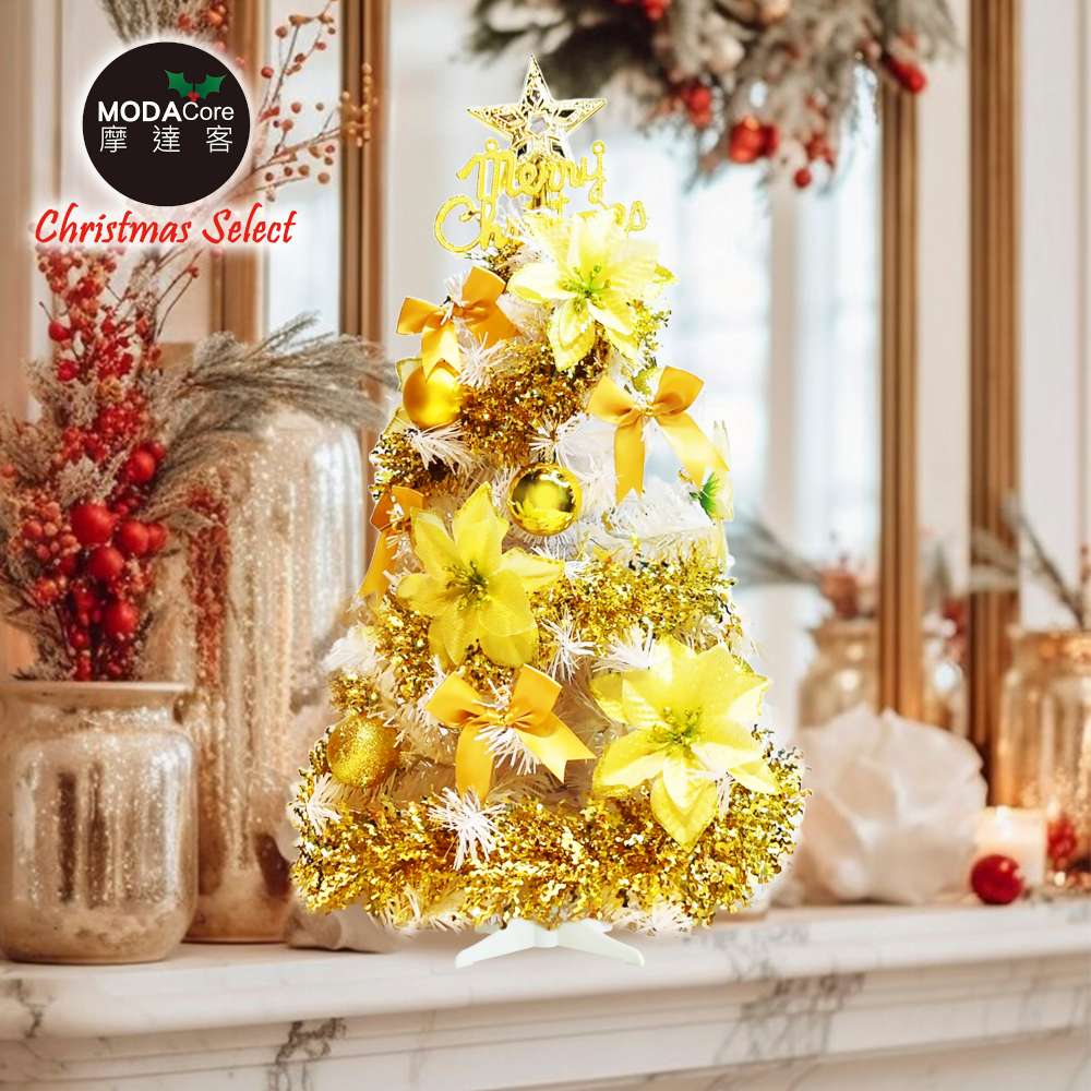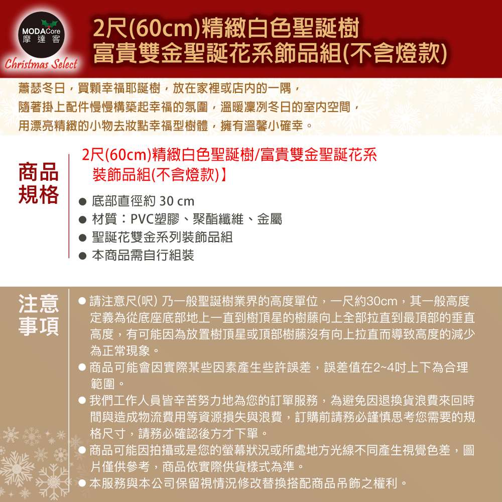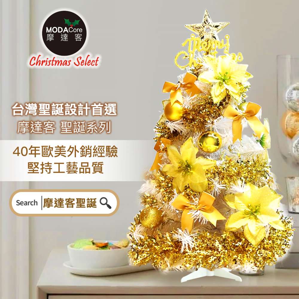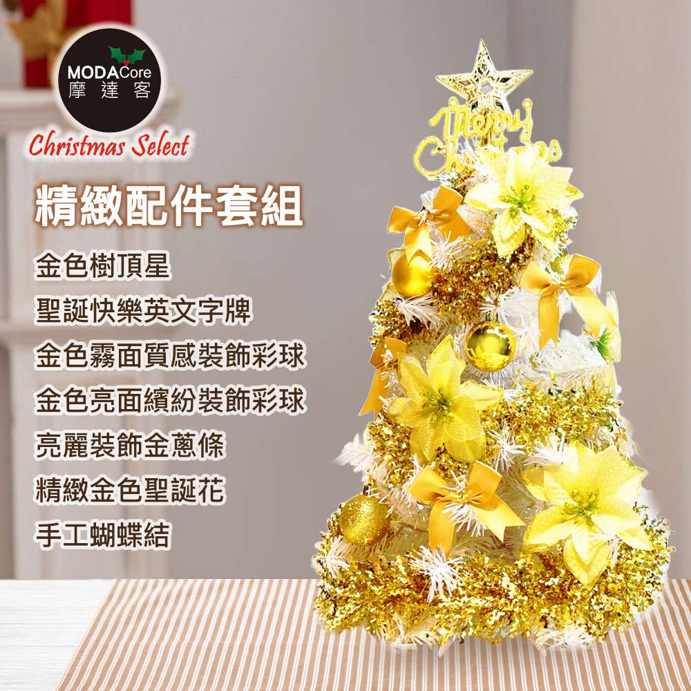 摩達客-台灣製2尺(60cm)精緻白色聖誕樹+富貴雙金聖誕花系飾品組/不含燈/本島免運費MIT歐美外銷人氣款