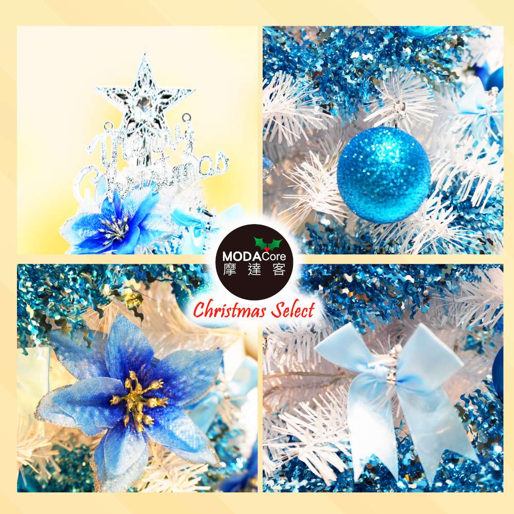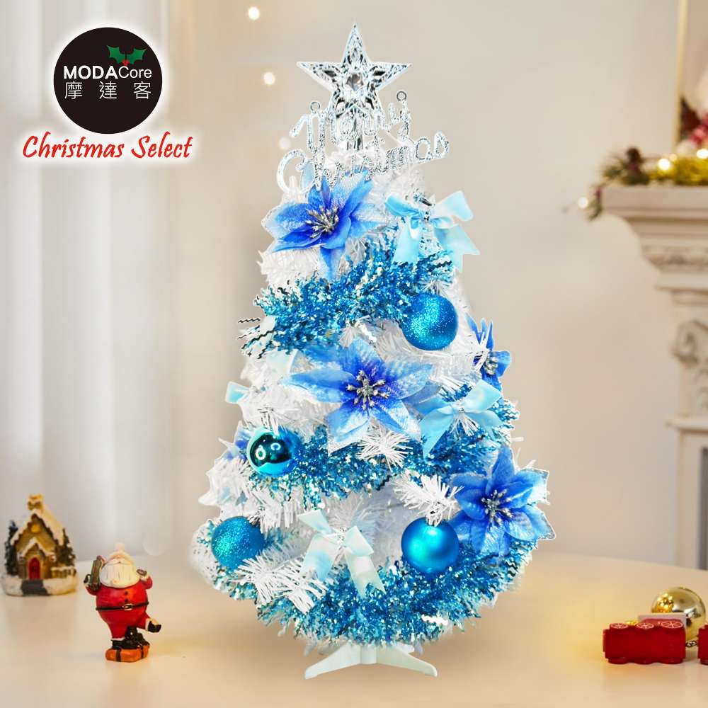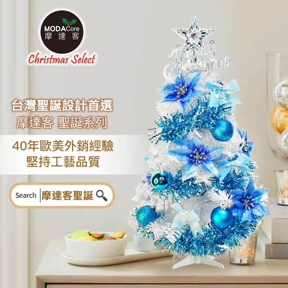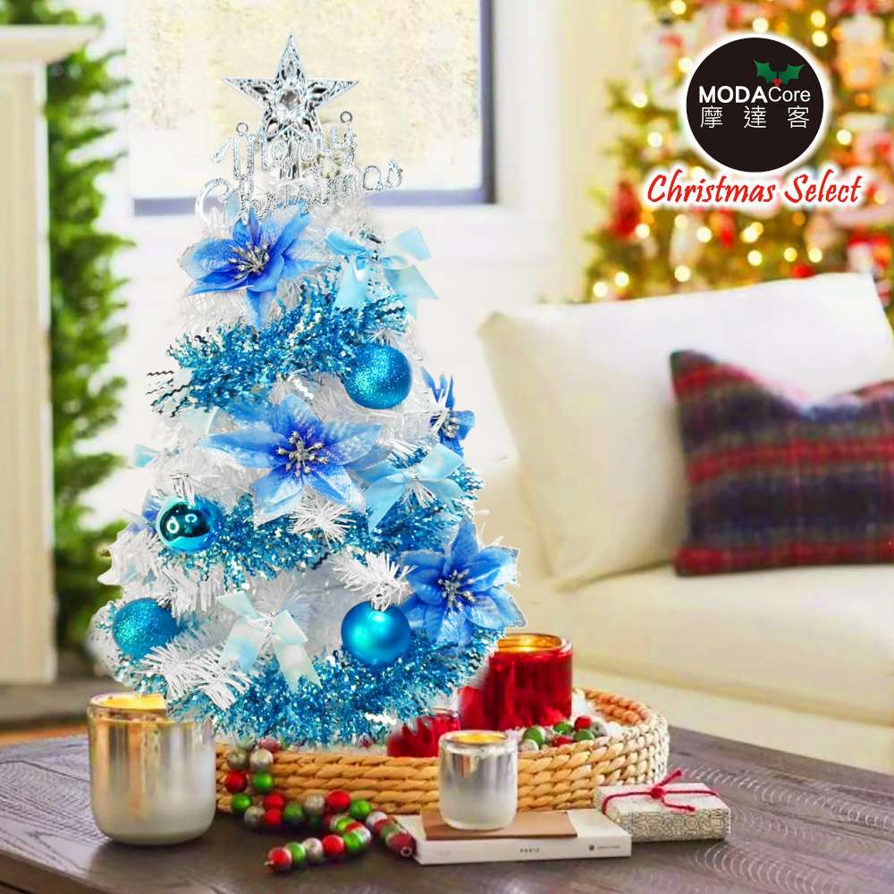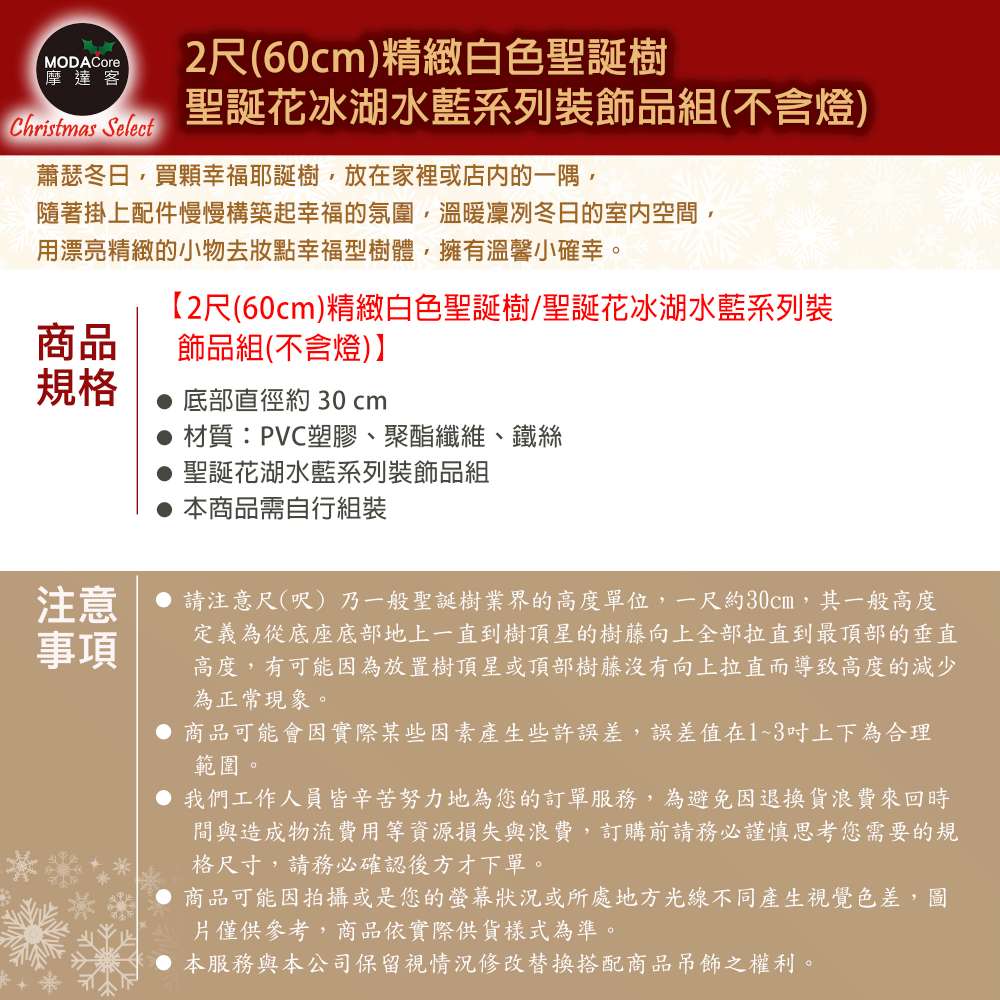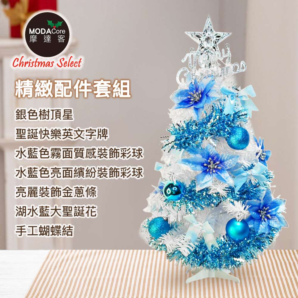 摩達客-台灣製2尺(60cm)精緻白色聖誕樹+聖誕花冰湖水藍系飾品組/不含燈/本島免運費MIT歐美外銷人氣款