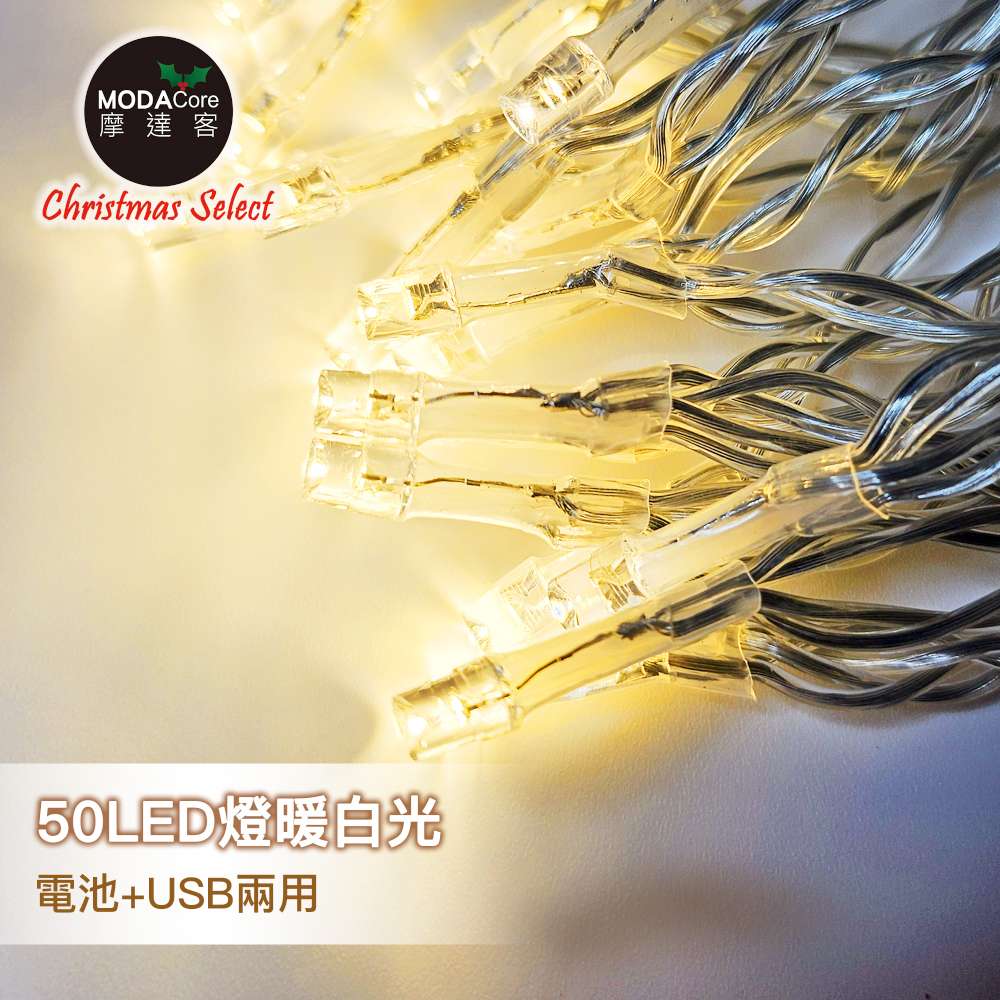 摩達客-50燈LED燈串暖白光_USB+電池盒兩用充電-聖誕燈樹燈露營燈