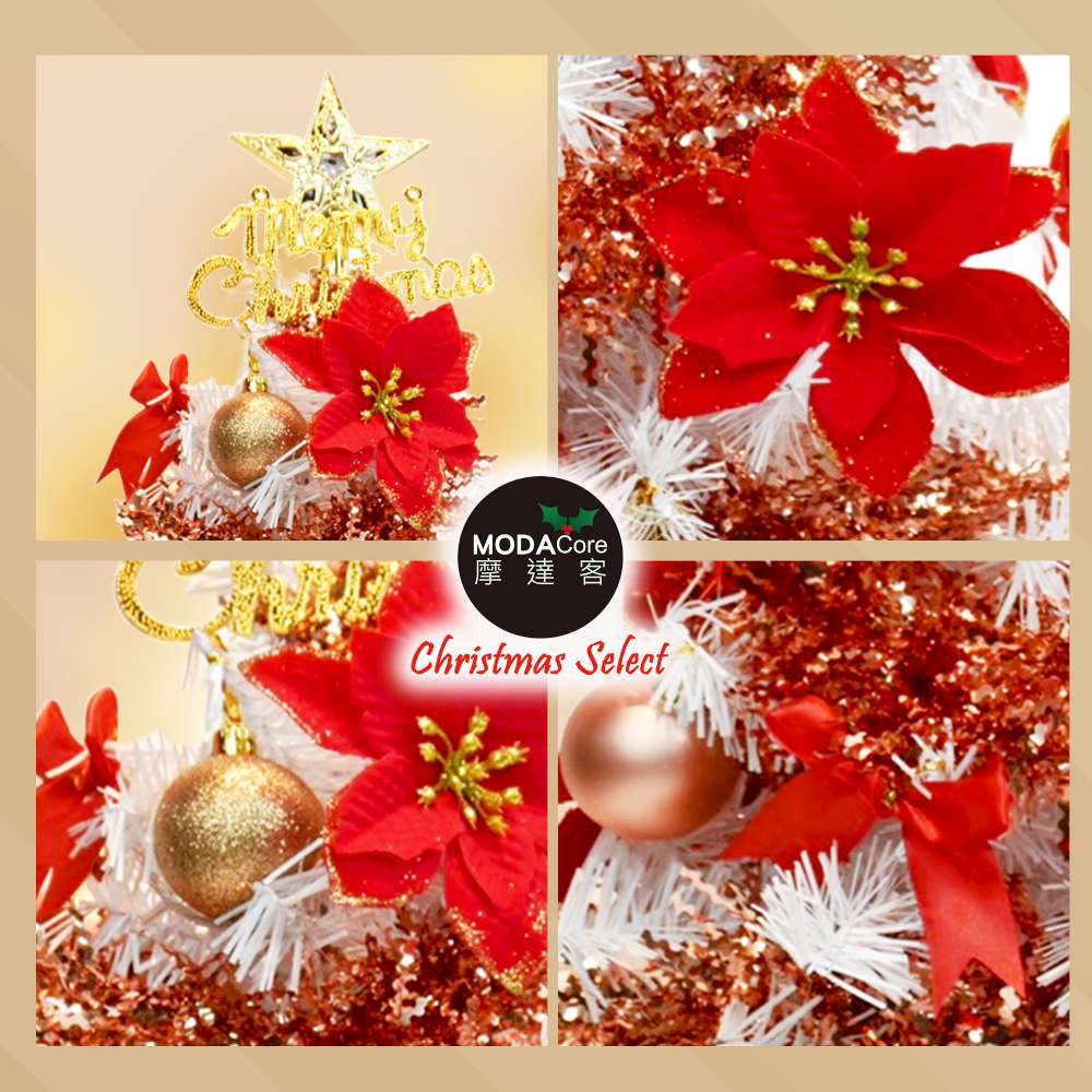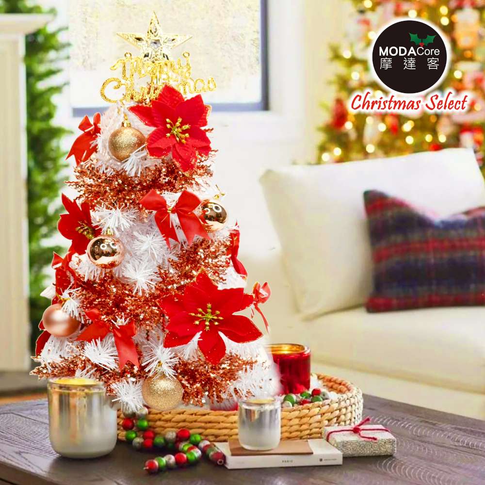 摩達客-台灣製2尺(60cm)精緻白色聖誕樹+熱情西班牙聖誕花紅金系飾品組/不含燈/本島免運費MIT歐美外銷人氣款