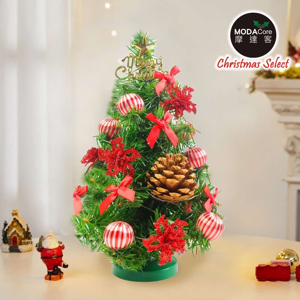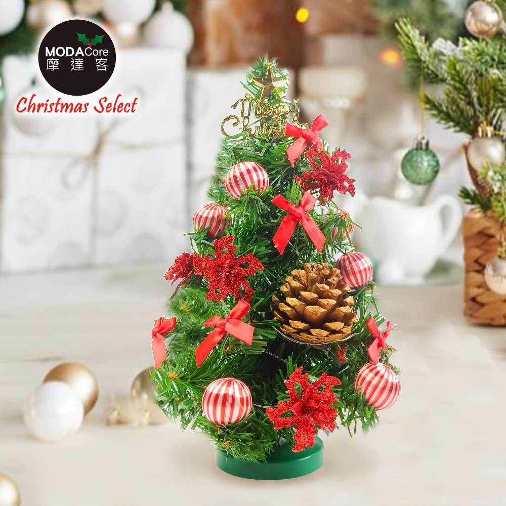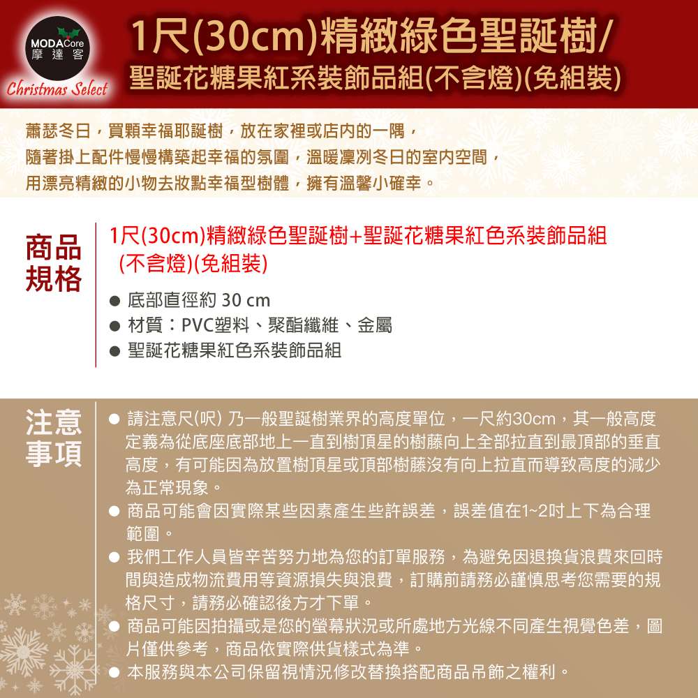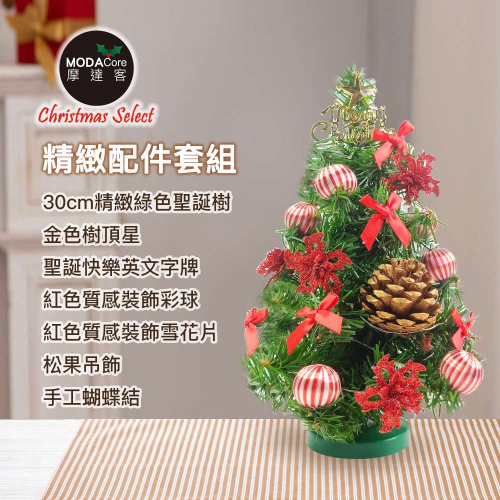 摩達客-台灣製1尺30cm精緻綠色聖誕樹+聖誕花糖果紅系裝飾品組_免組裝_本島免運費