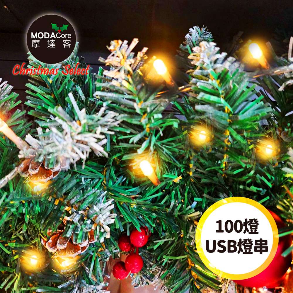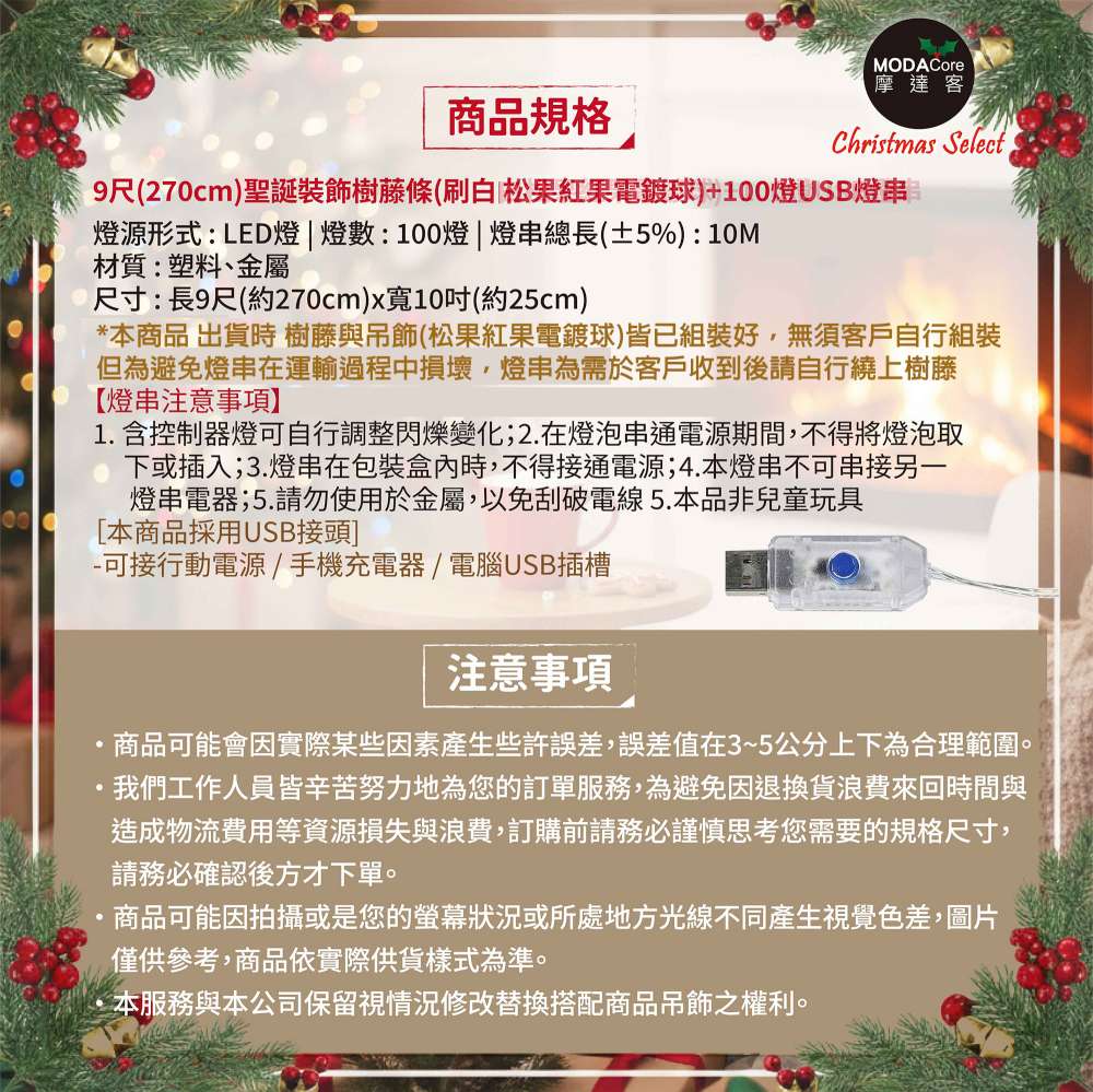 摩達客9尺/270cm刷白松果紅果裝飾樹藤條+優雅紅繽金電鍍球裝飾+LED100燈串-免組裝/可彎曲調整_可掛門邊/窗邊/牆沿_本島免運費
