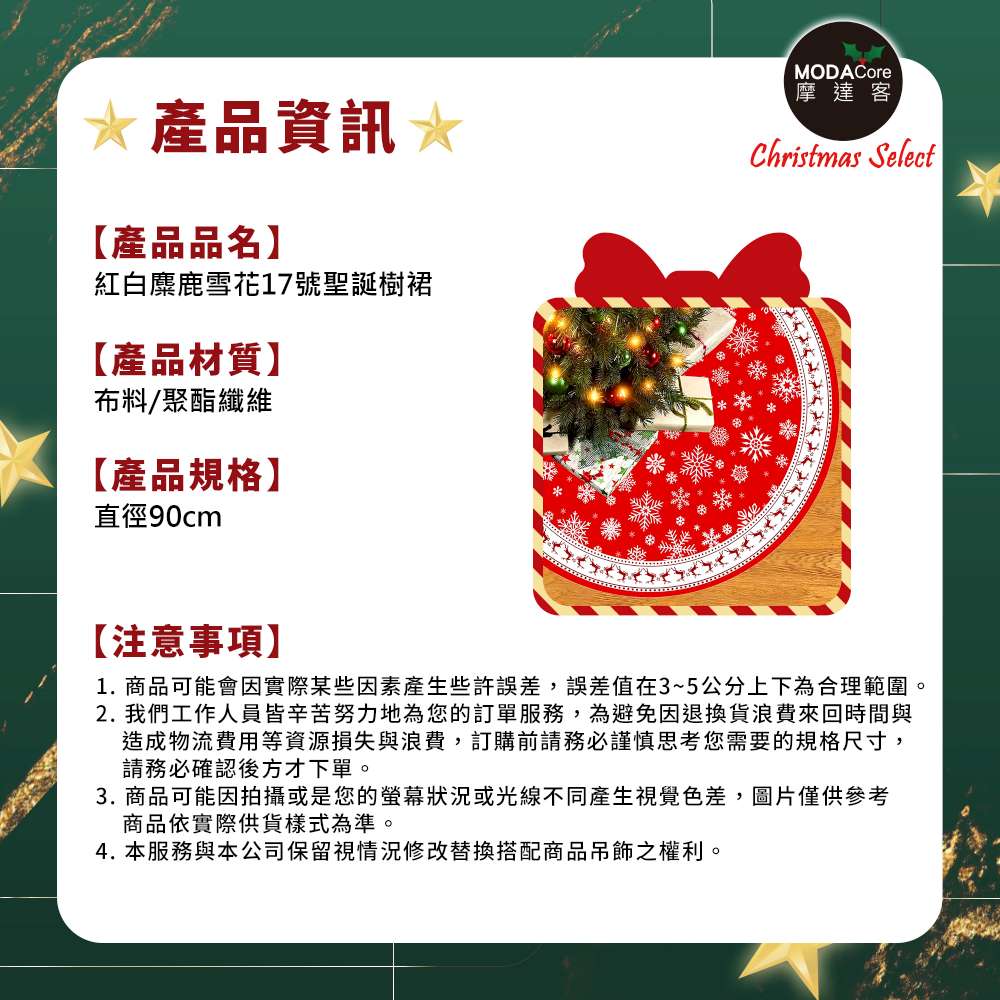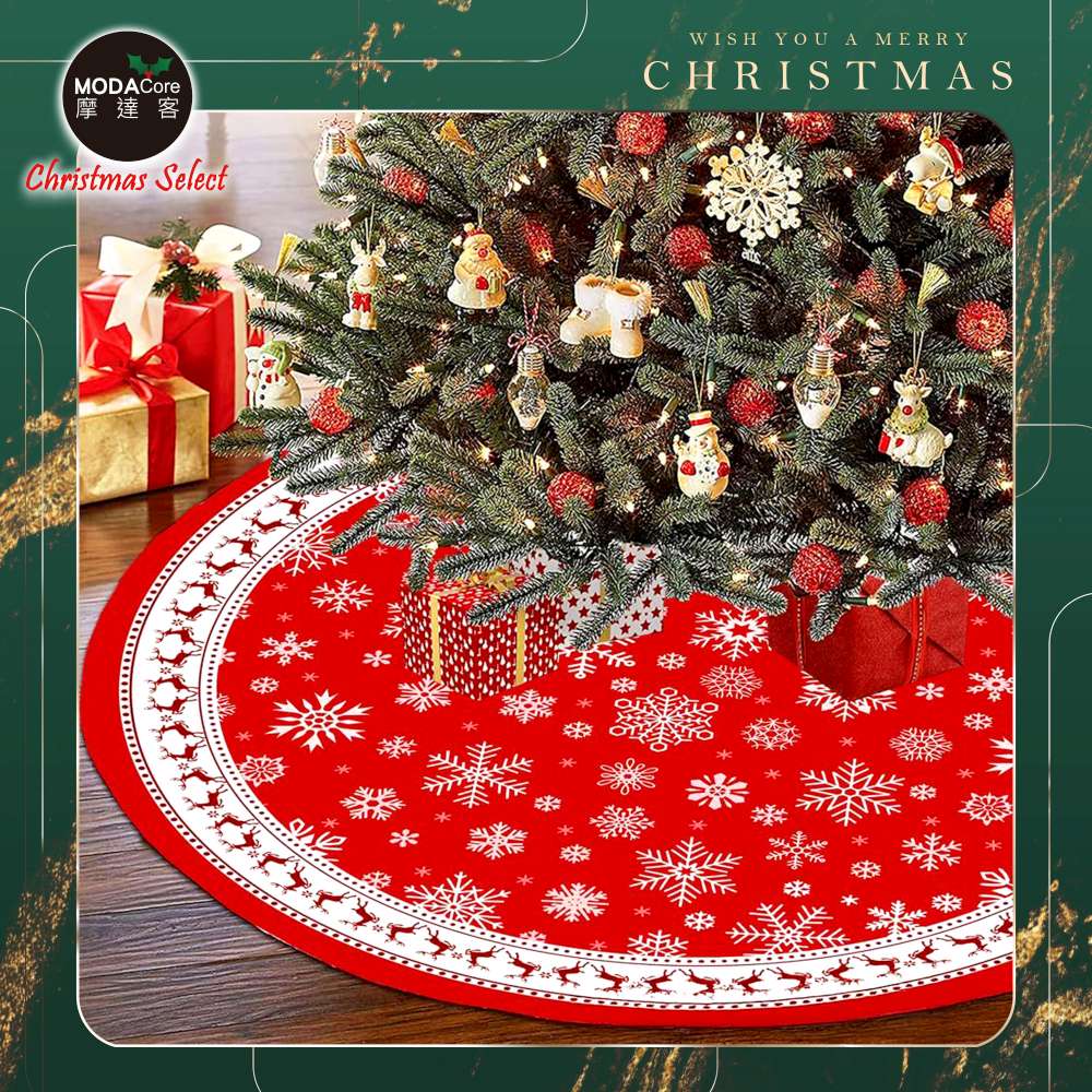 摩達客紅白麋鹿雪花17號聖誕樹裙90cm_聖誕樹裝飾底墊