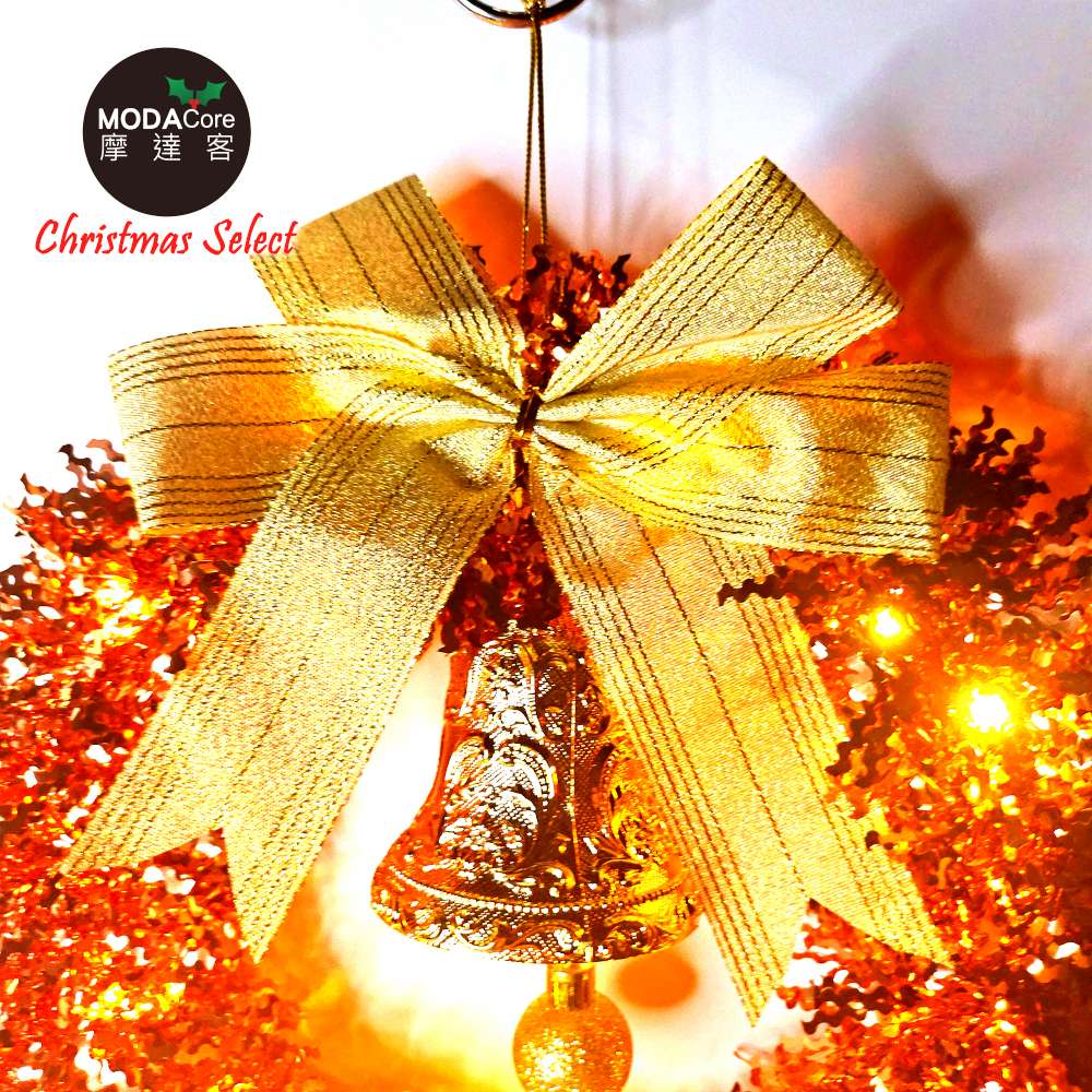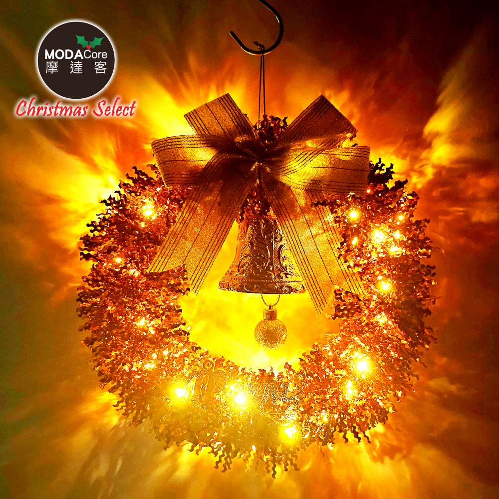 摩達客11吋優雅香檳玫金系金蔥彎絲聖誕花圈+20燈LED暖白光燈串_本島免運費