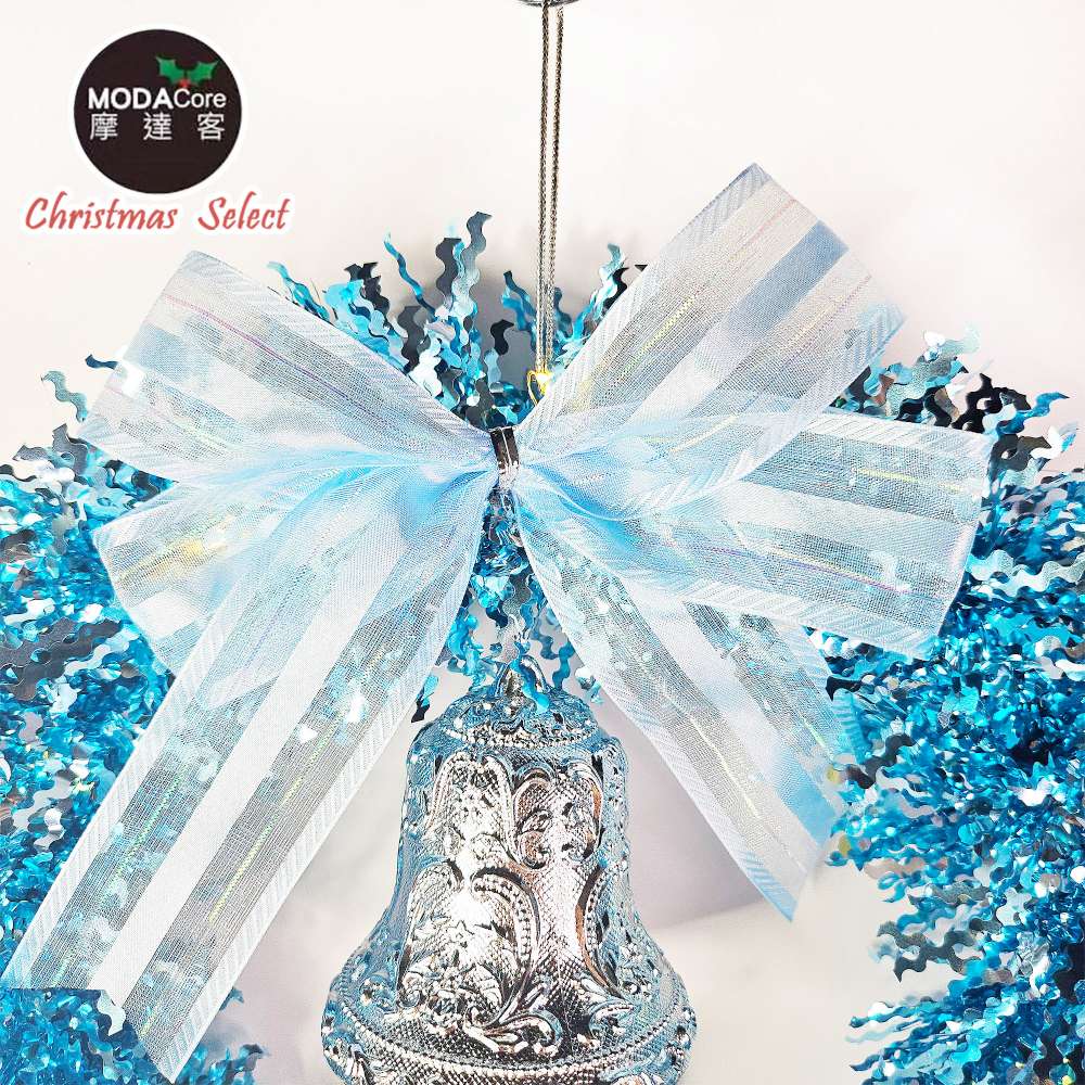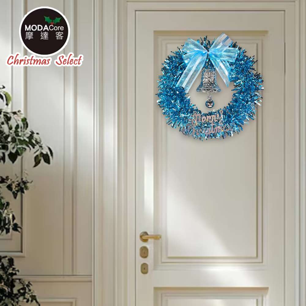 摩達客11吋夢幻土耳其藍系金蔥彎絲聖誕花圈_台灣工藝免組裝_本島免運費
