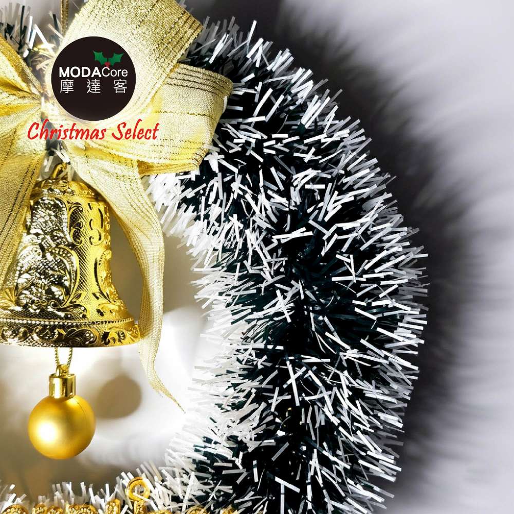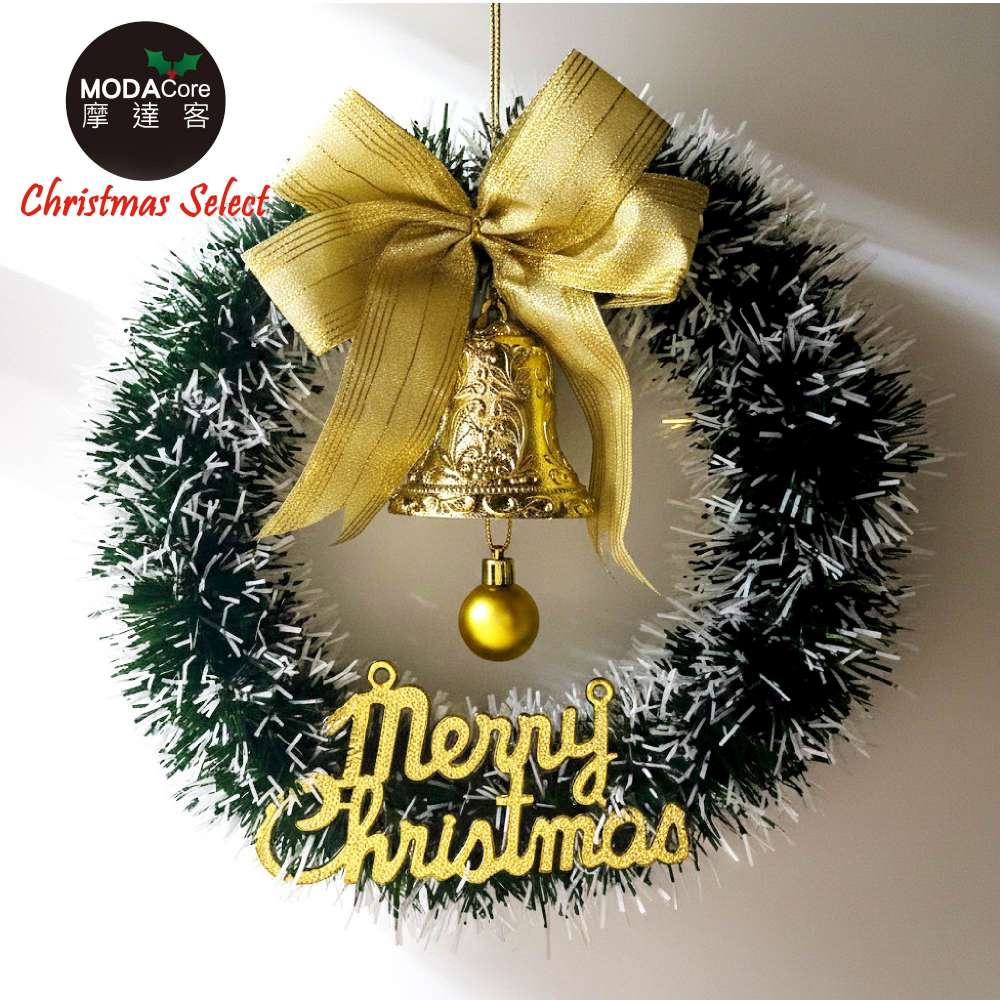 摩達客11吋風尚雅墨綠刷白系金蔥彎絲聖誕花圈_台灣工藝免組裝_本島免運費