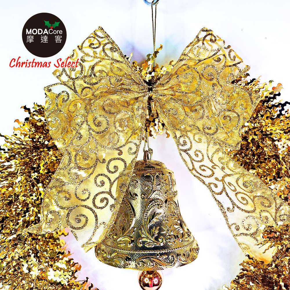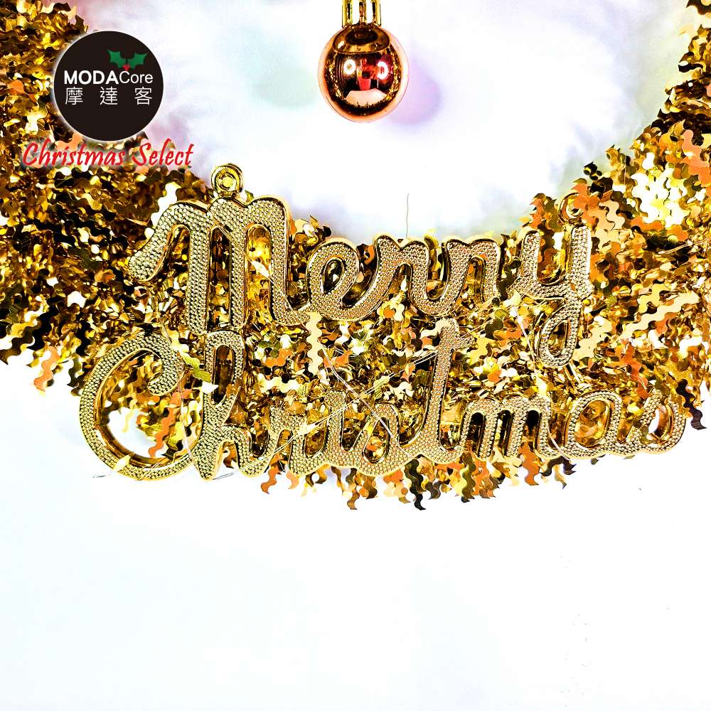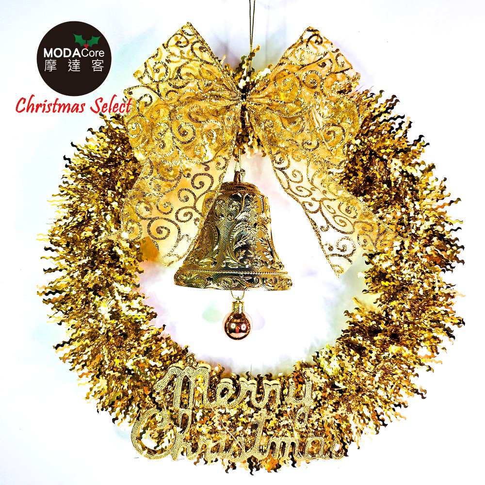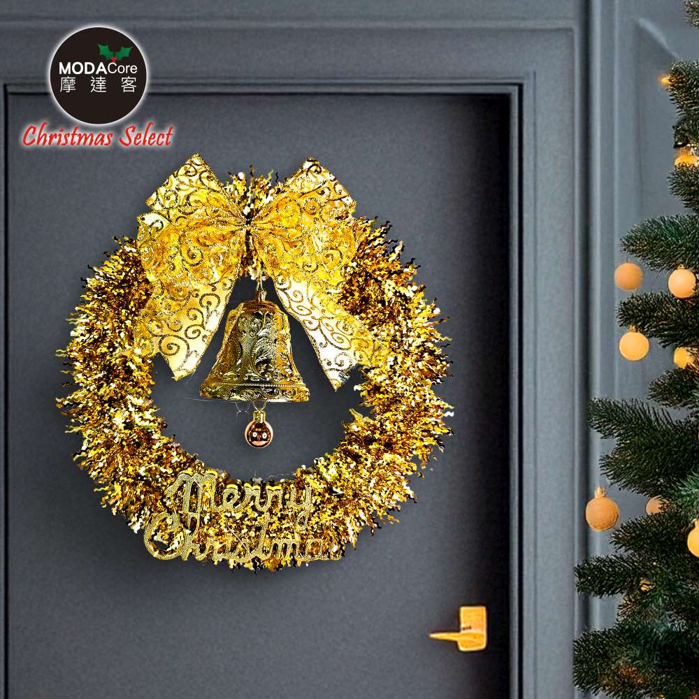 摩達客14吋璀璨金運系金蔥彎絲聖誕花圈_台灣工藝免組裝_本島免運費
