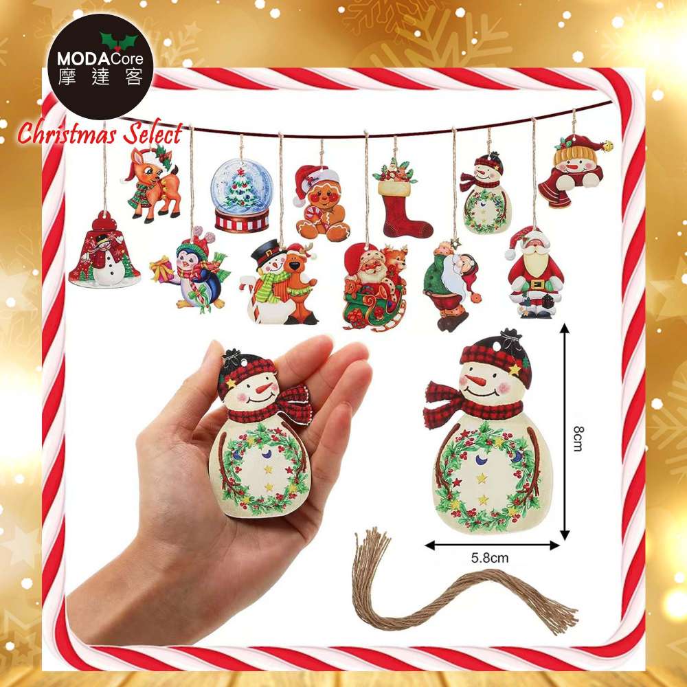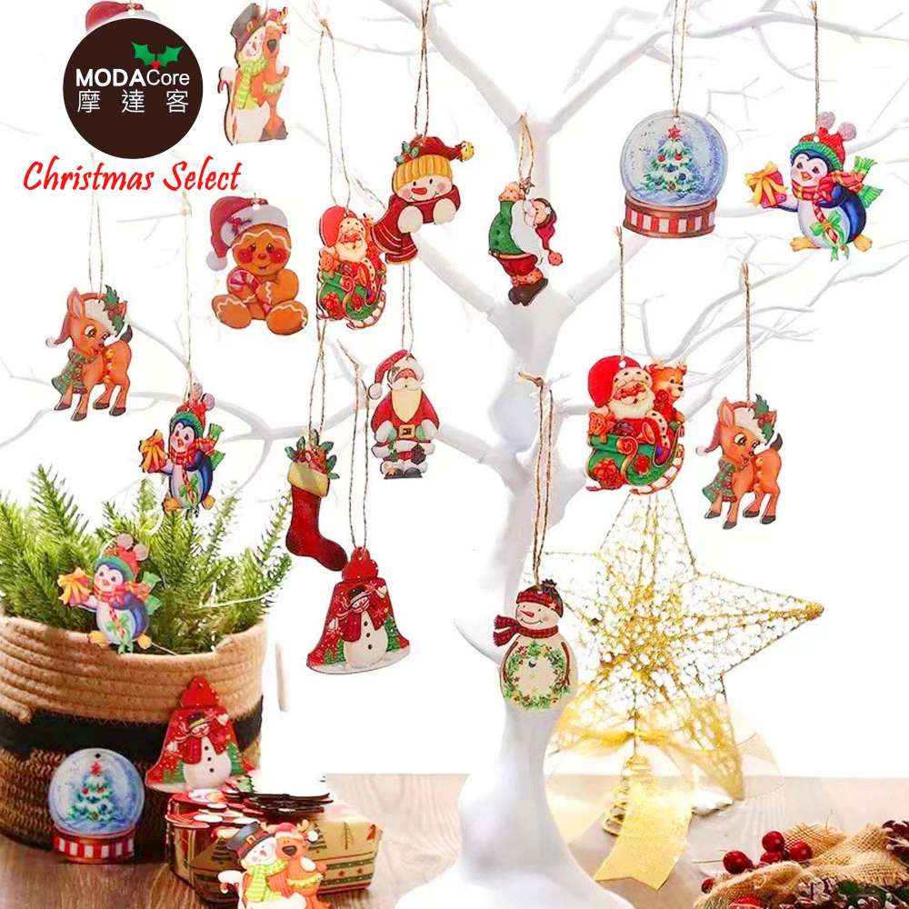 摩達客-童話故事聖誕木質彩繪吊飾-12款圖案36件組-交換禮物耶誕派對佈置