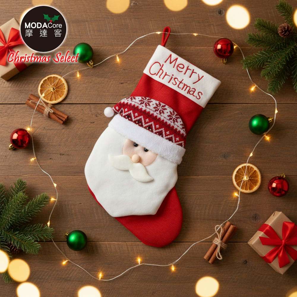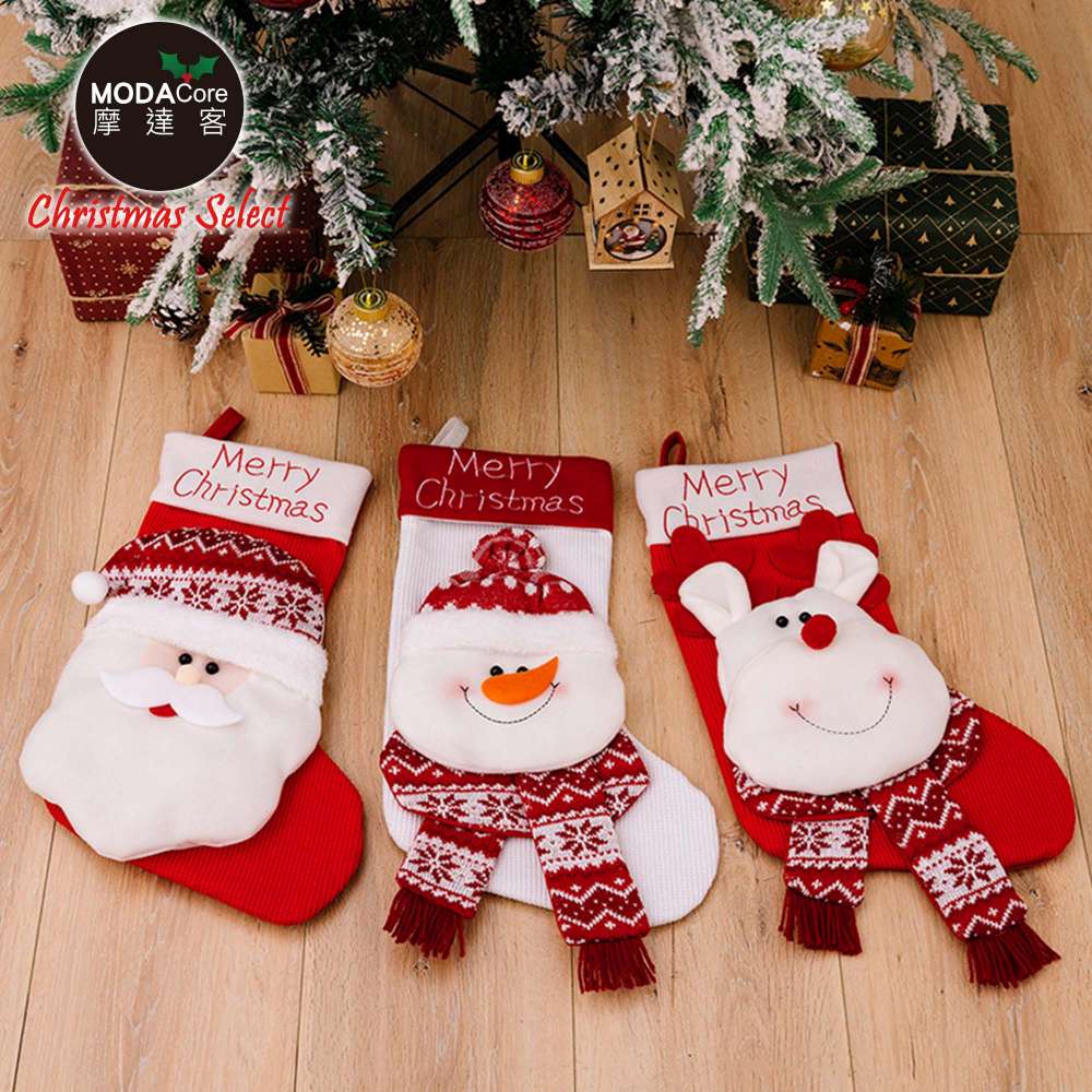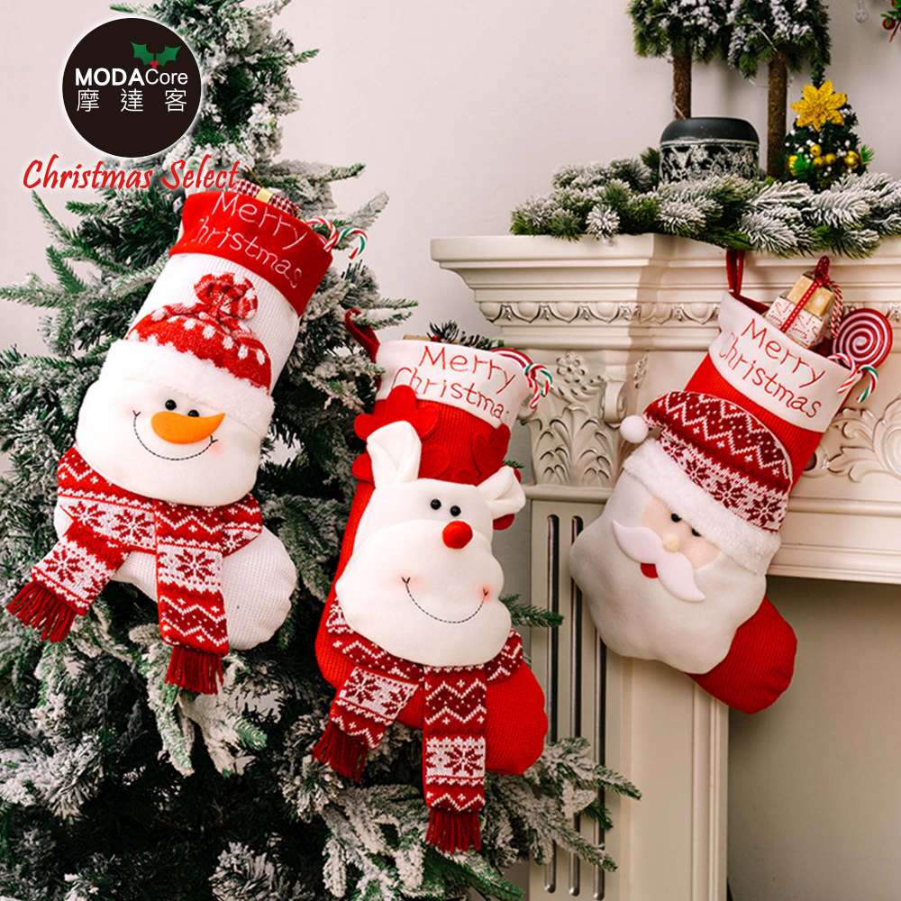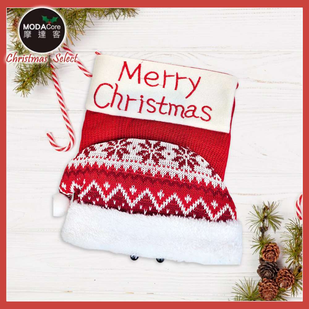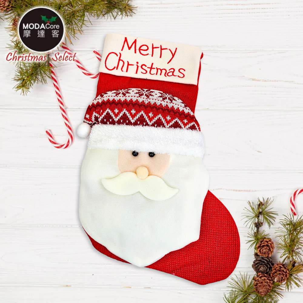 摩達客-溫暖紅白紋聖誕襪-聖誕老公款-耶誕派對交換禮物