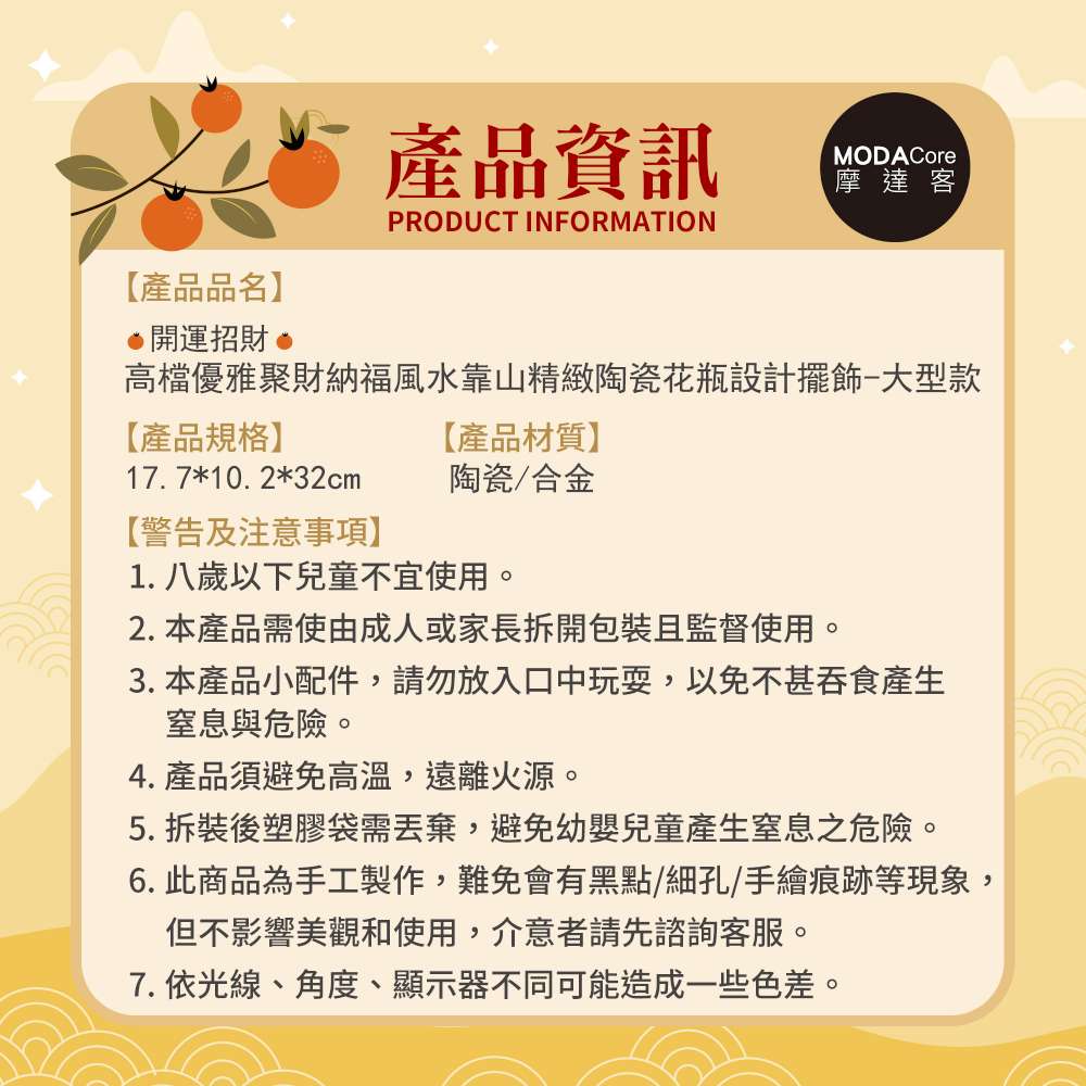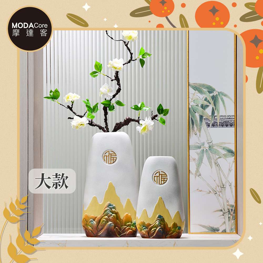 摩達客◉開運招財◉高檔優雅聚財納福風水靠山精緻陶瓷花瓶設計擺飾-大型款 插花 玄關客廳適用