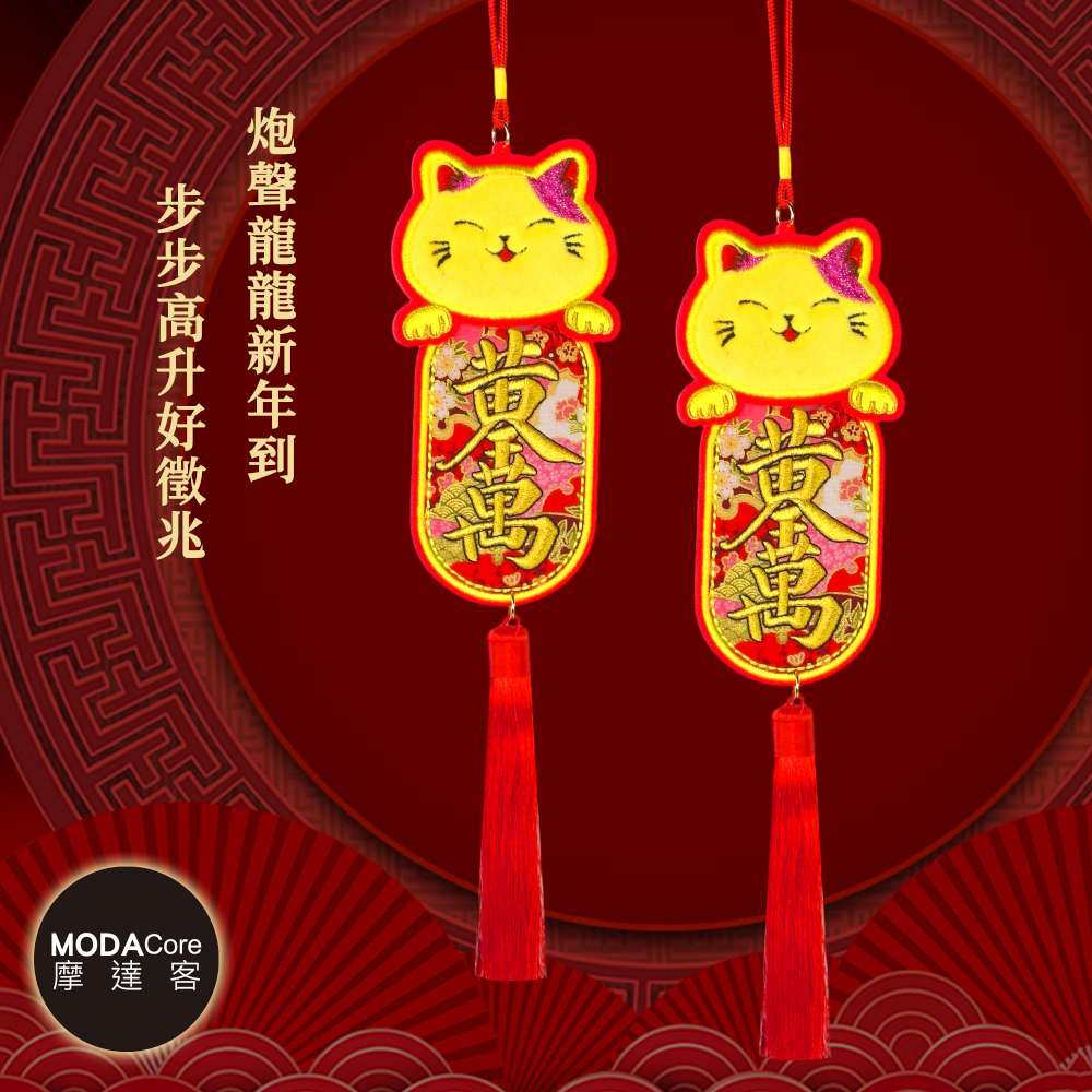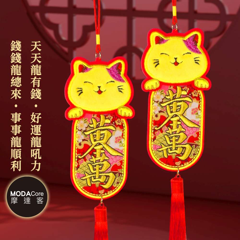 摩達客◉春節開運招財◉刺繡絨毛黃金千萬兩招財貓流蘇掛飾吊飾