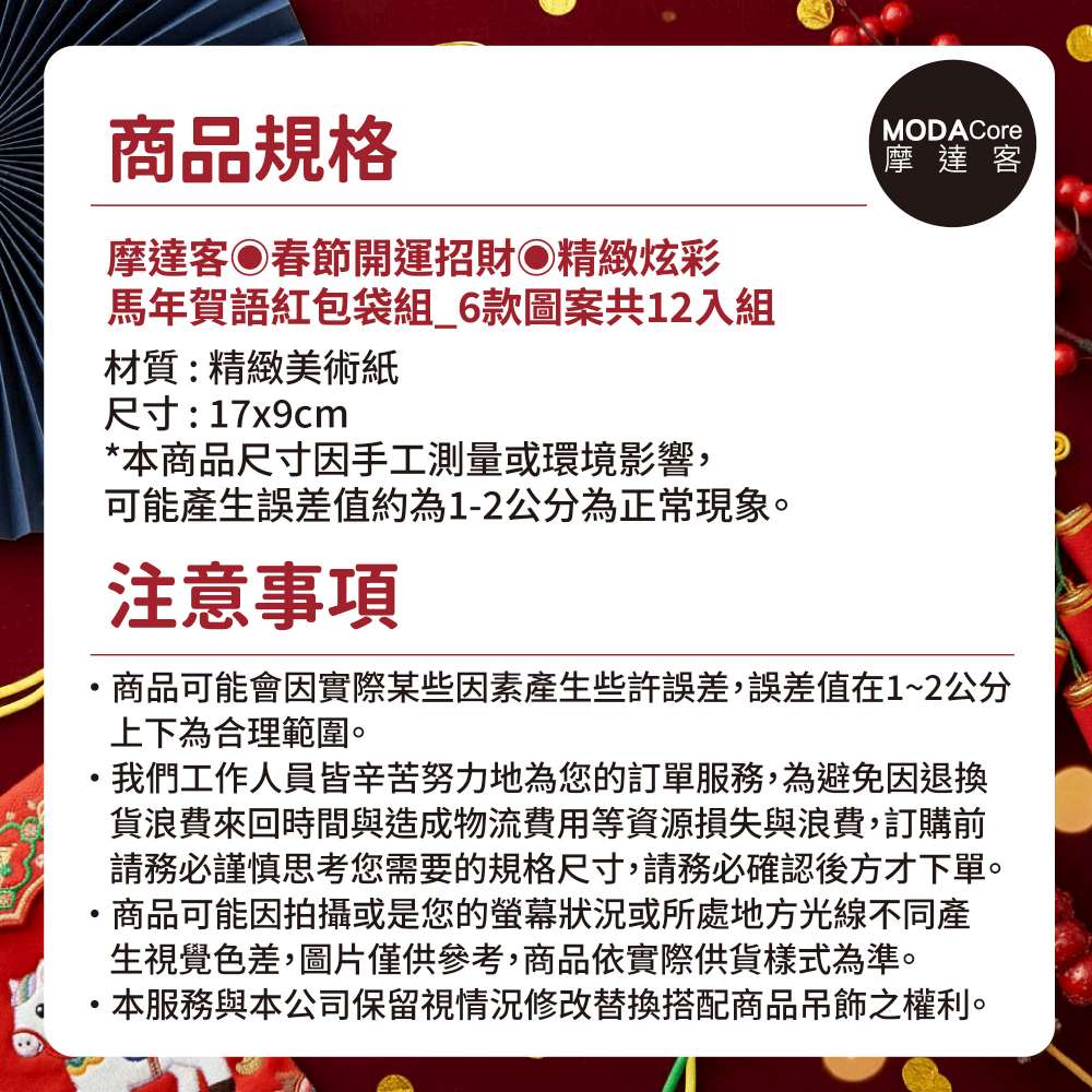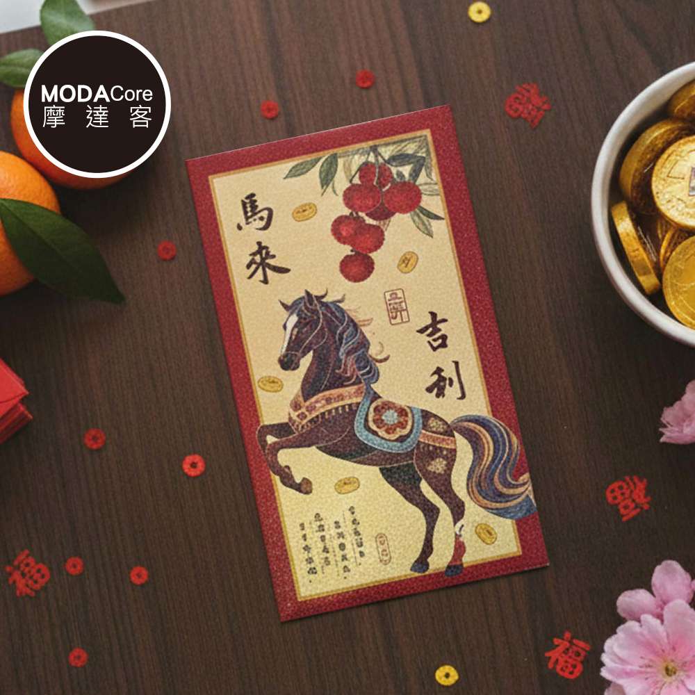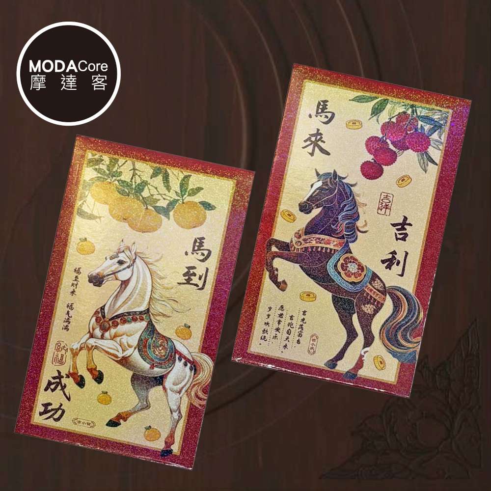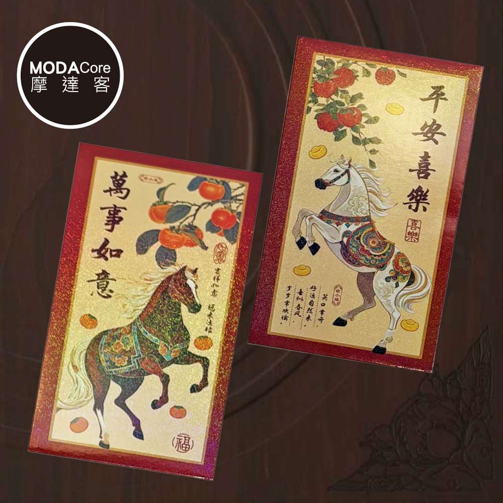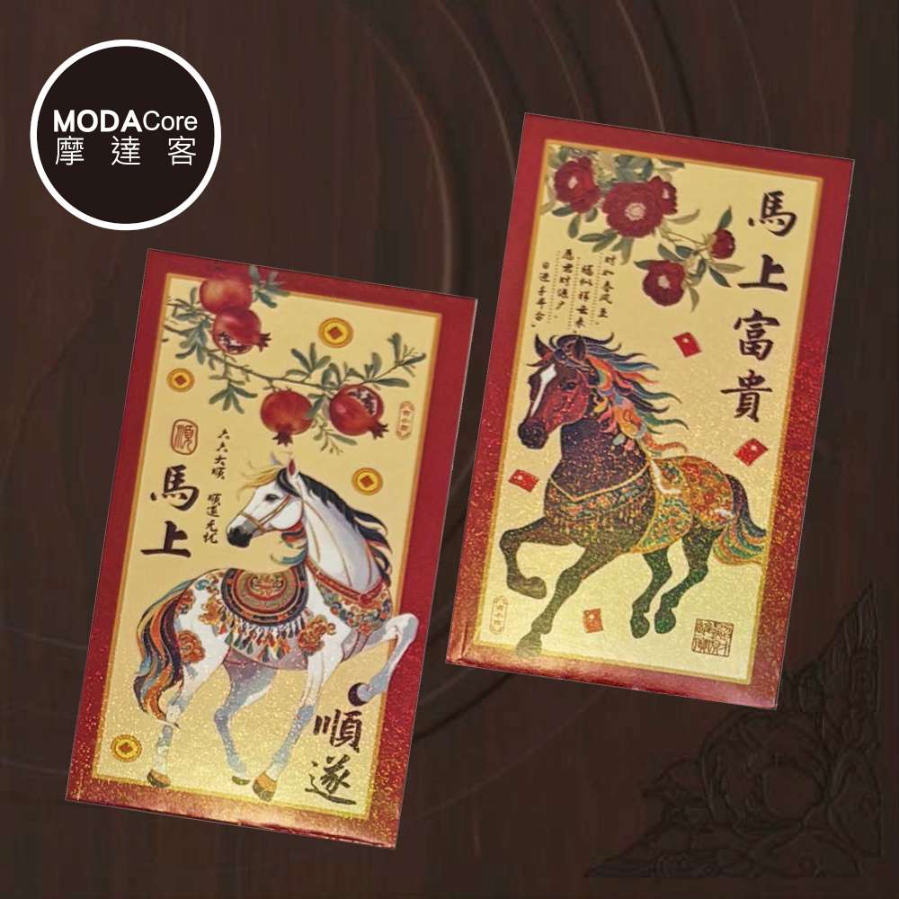 摩達客◉春節開運招財◉精緻炫彩馬年賀語紅包袋組_6款圖案共12入組