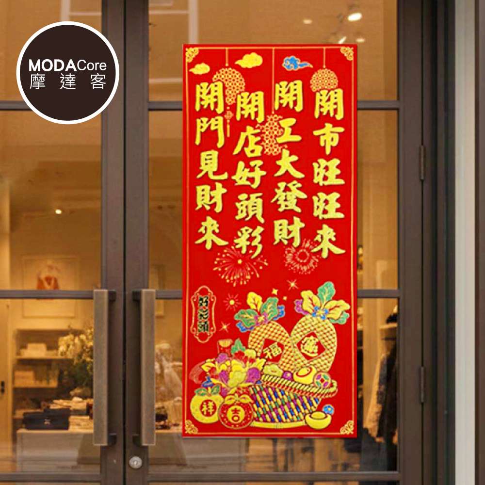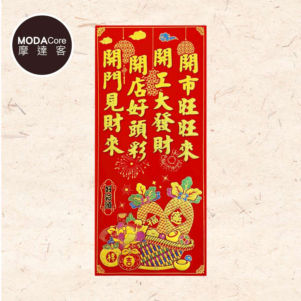 摩達客◉春節開運招財◉彩金開市旺旺來絨布6K燙金豎輝春門貼春聯(單片入)