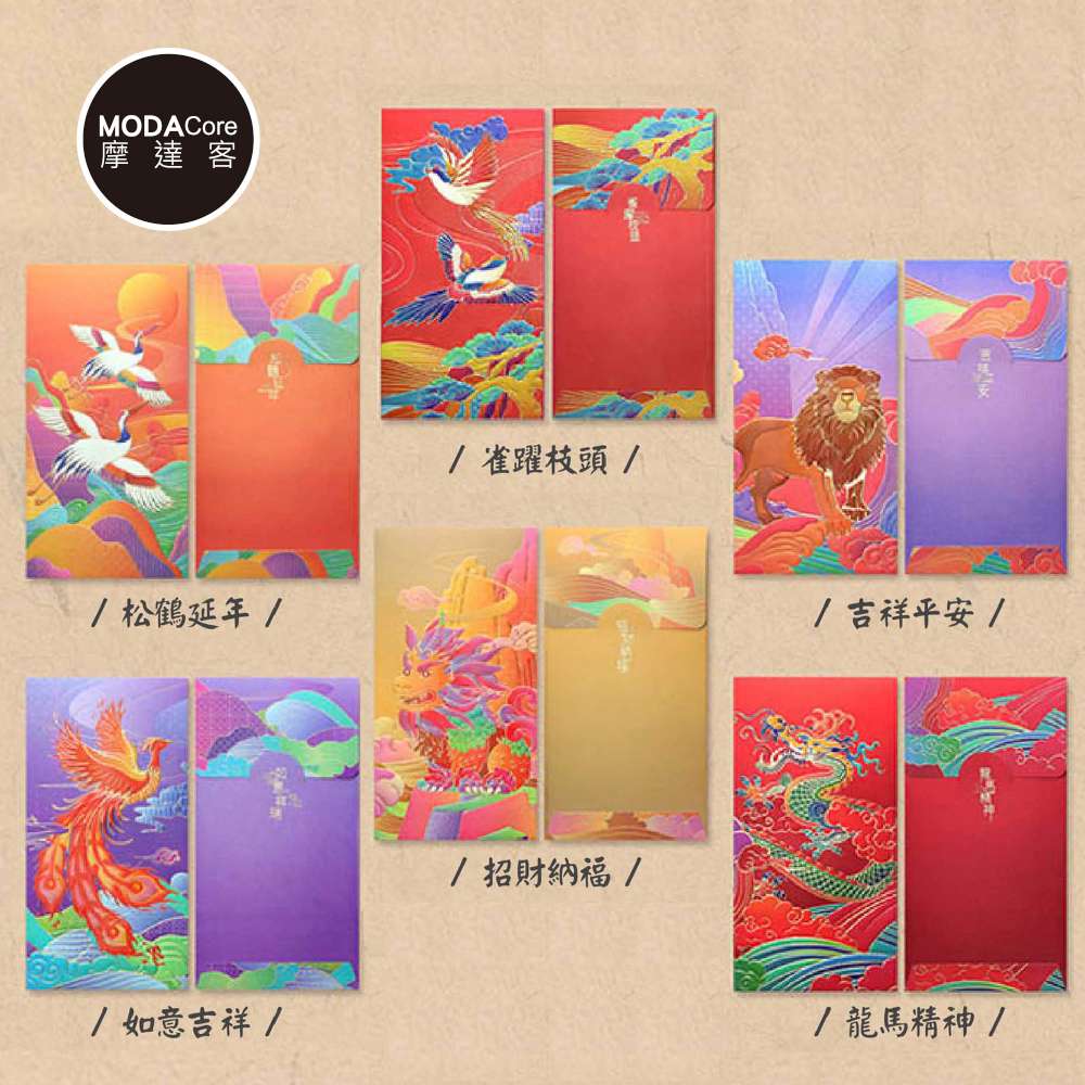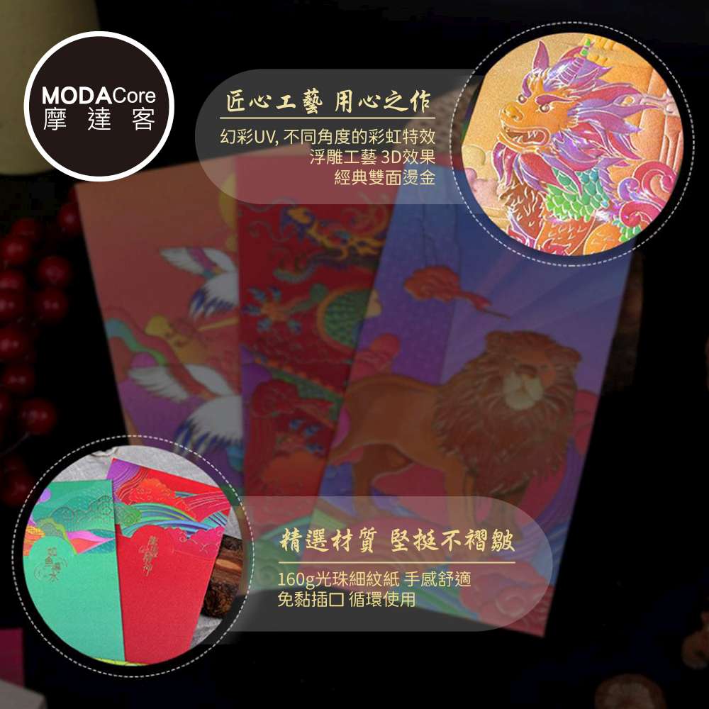 摩達客◉春節開運招財◉山海經浮雕燙金紅包袋_8款圖案隨機共12入組