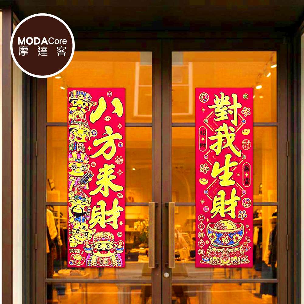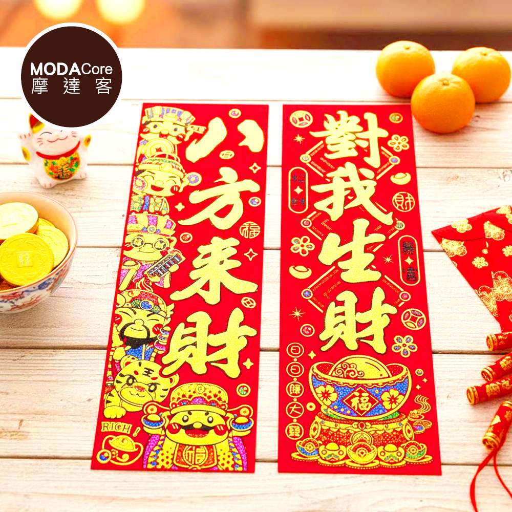 摩達客◉春節開運招財◉創意亮彩Q版八方來財來福啦斗方春聯兩片組