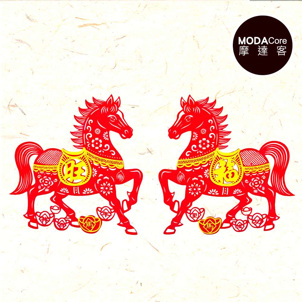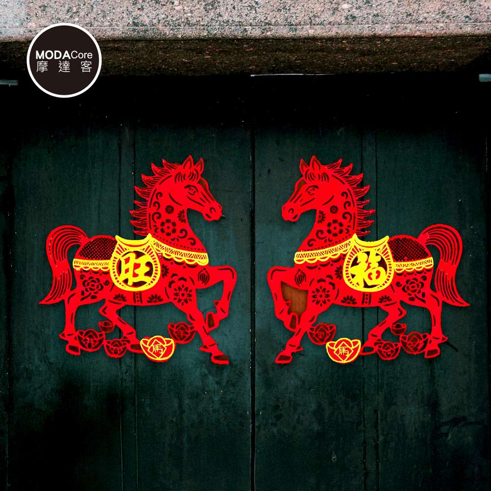 摩達客◉春節開運招財◉植絨立體福旺紙剪馬(小)門聯對聯春聯兩片組