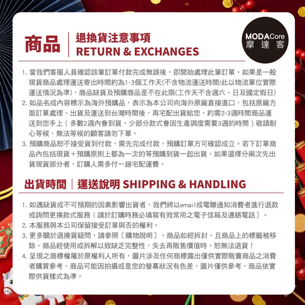 【退/換貨&售後服務】