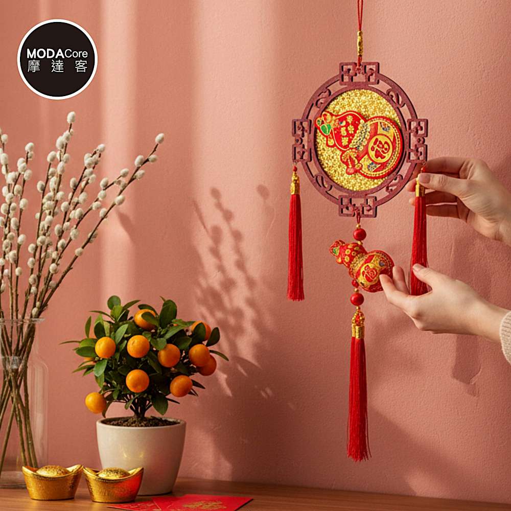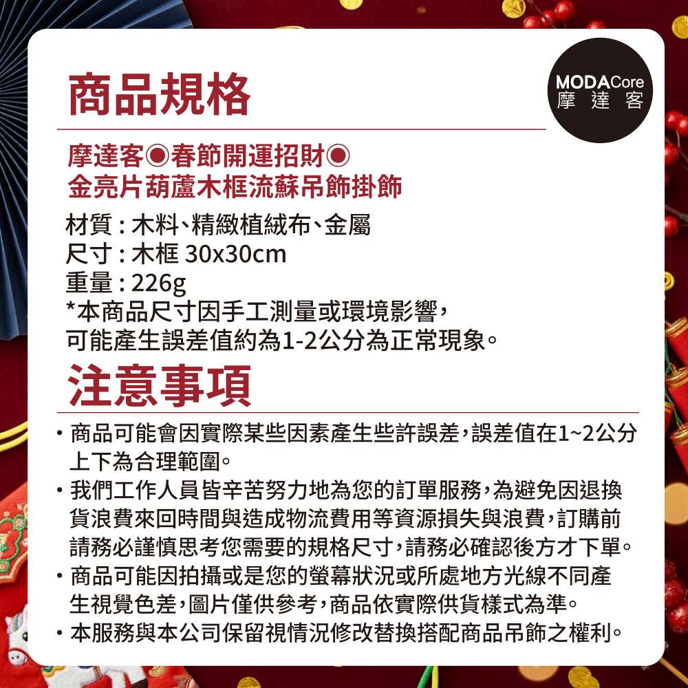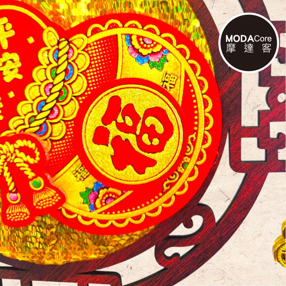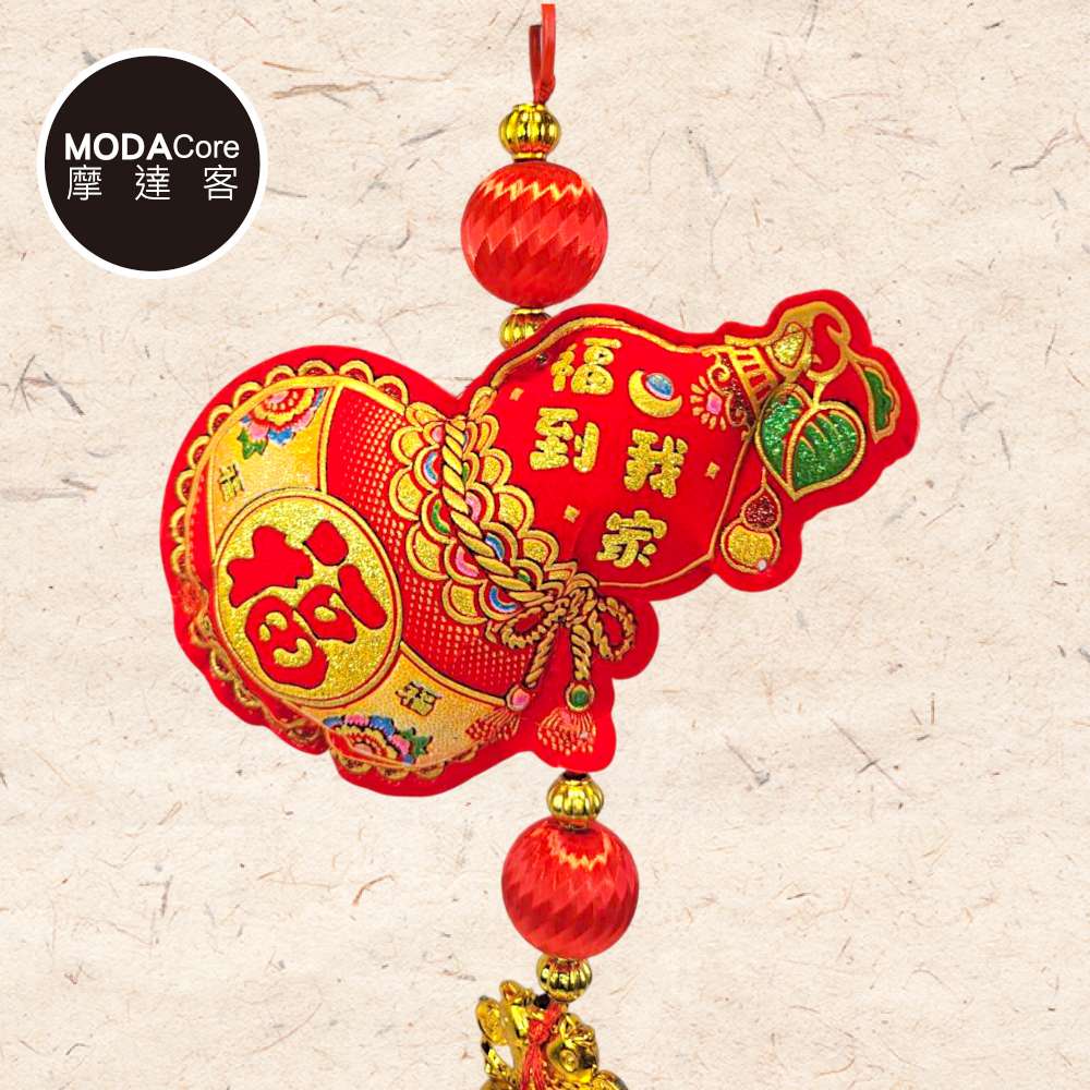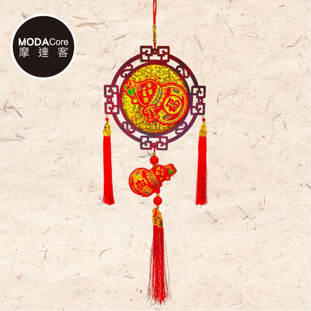 摩達客◉春節開運招財◉金亮片葫蘆木框流蘇吊飾掛飾
