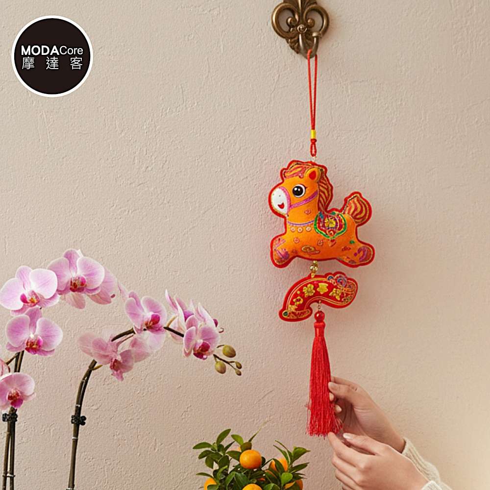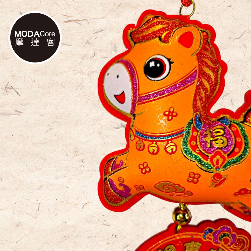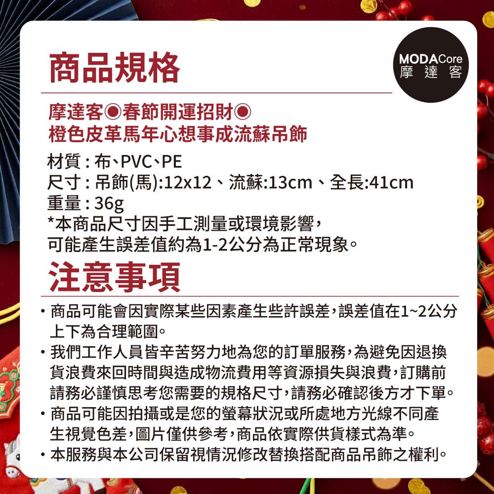 摩達客◉春節開運招財◉橙色皮革馬年心想事成流蘇吊飾