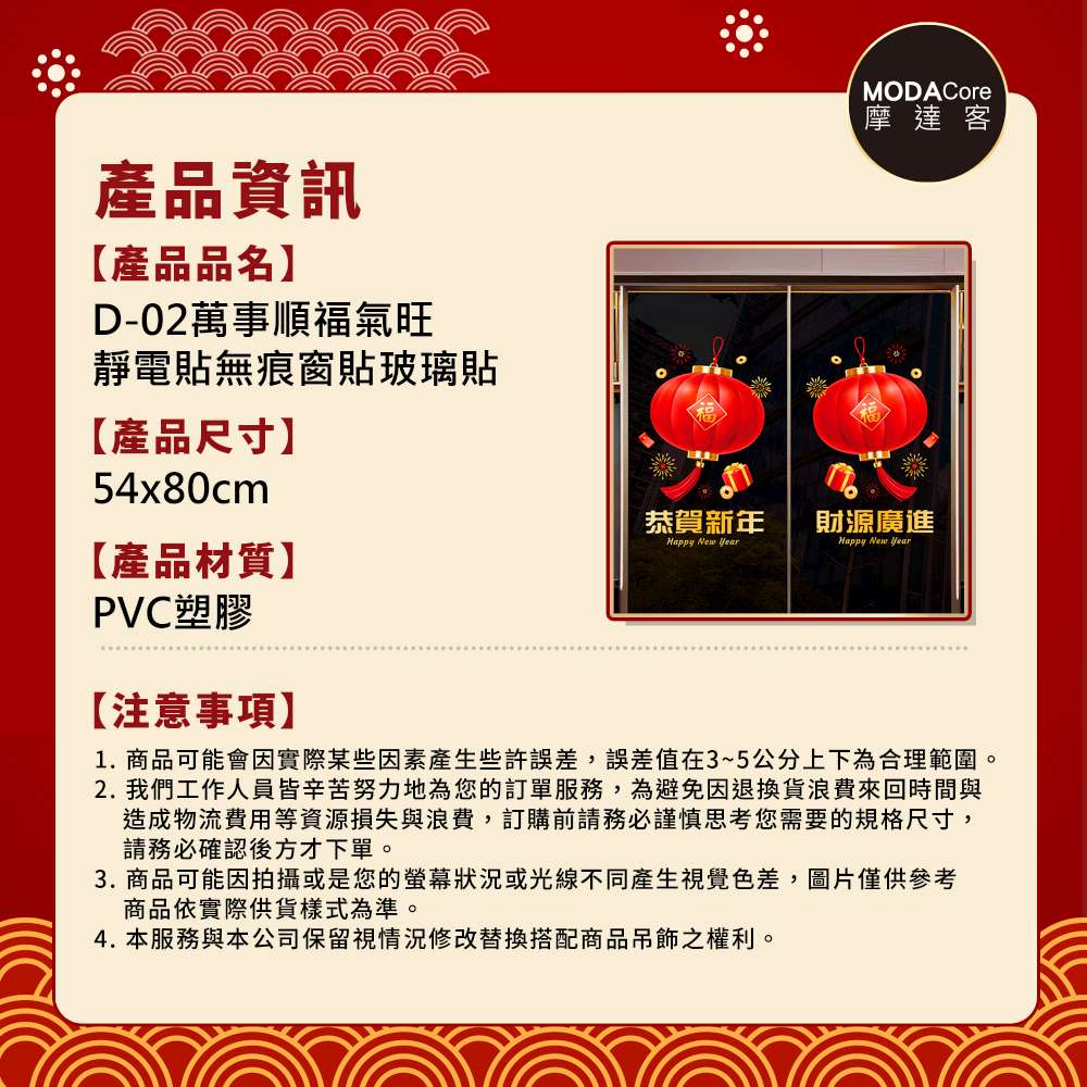 摩達客◉春節開運招財◉XD222恭賀新年財源廣進靜電貼無痕窗貼玻璃貼