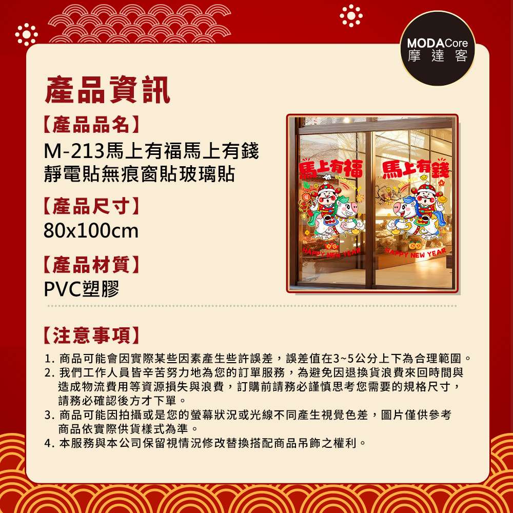 摩達客◉春節開運招財◉M213馬上有福馬上有錢靜電貼無痕窗貼玻璃貼