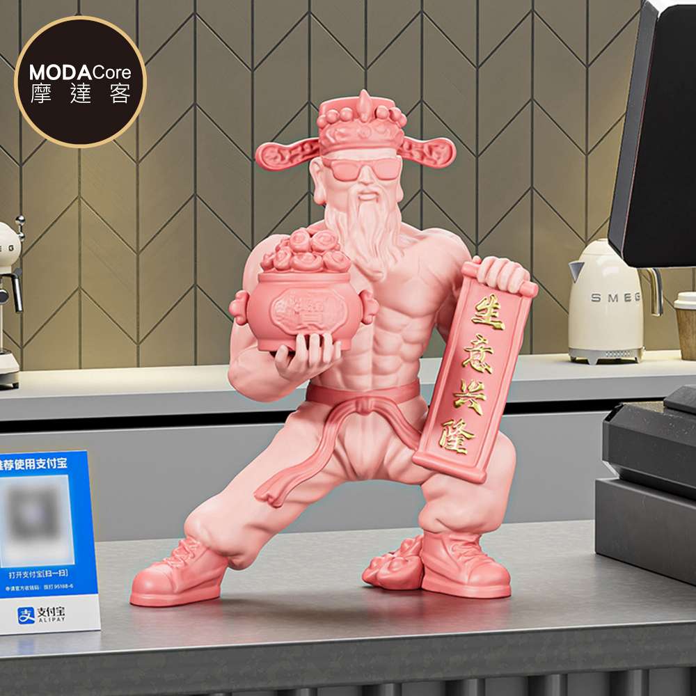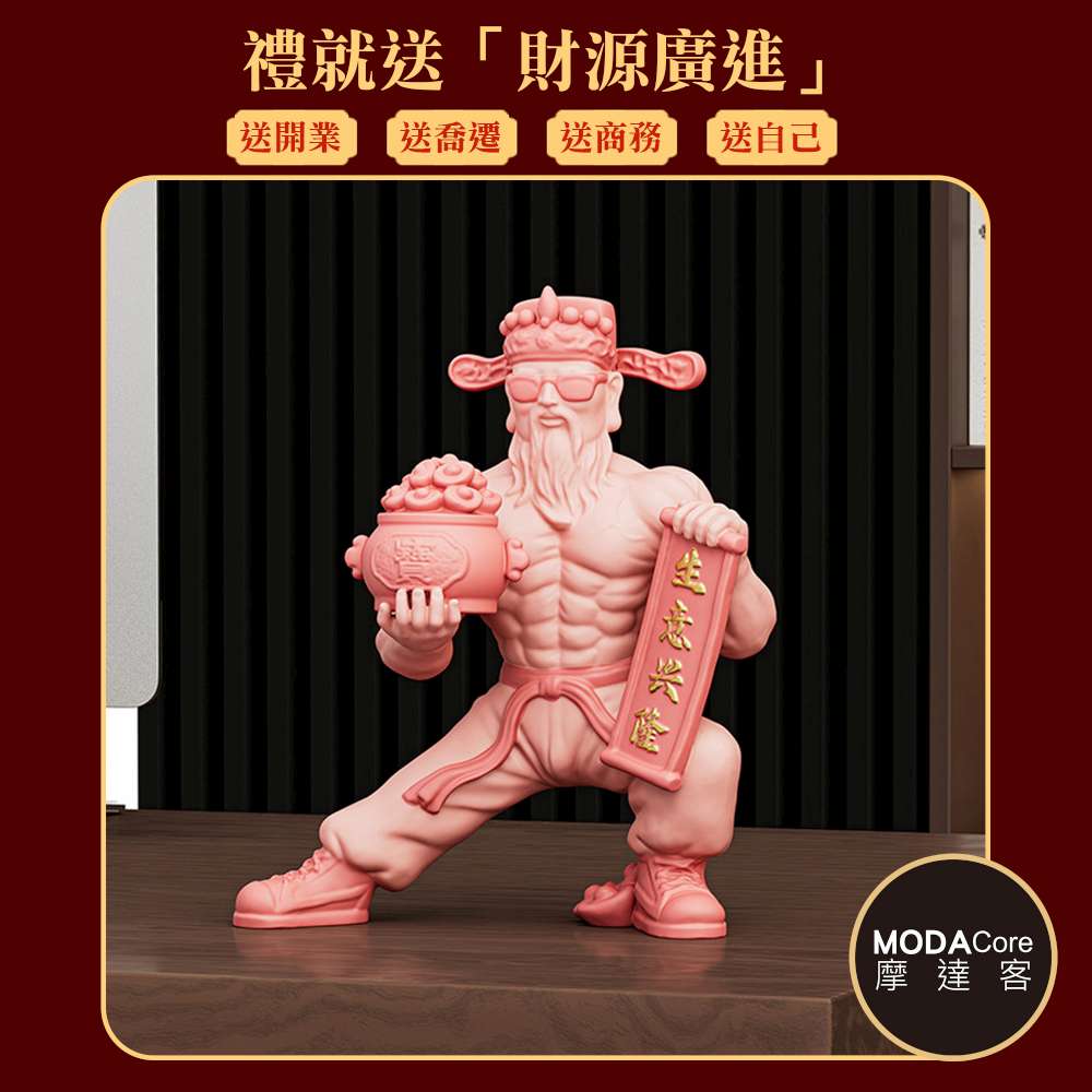 摩達客◉開運招財◉粉紅旺旺創意肌肉財神爺擺飾禮盒裝_生意興隆財源廣進客廳玄關臥室好風水新年好運勢春節旺