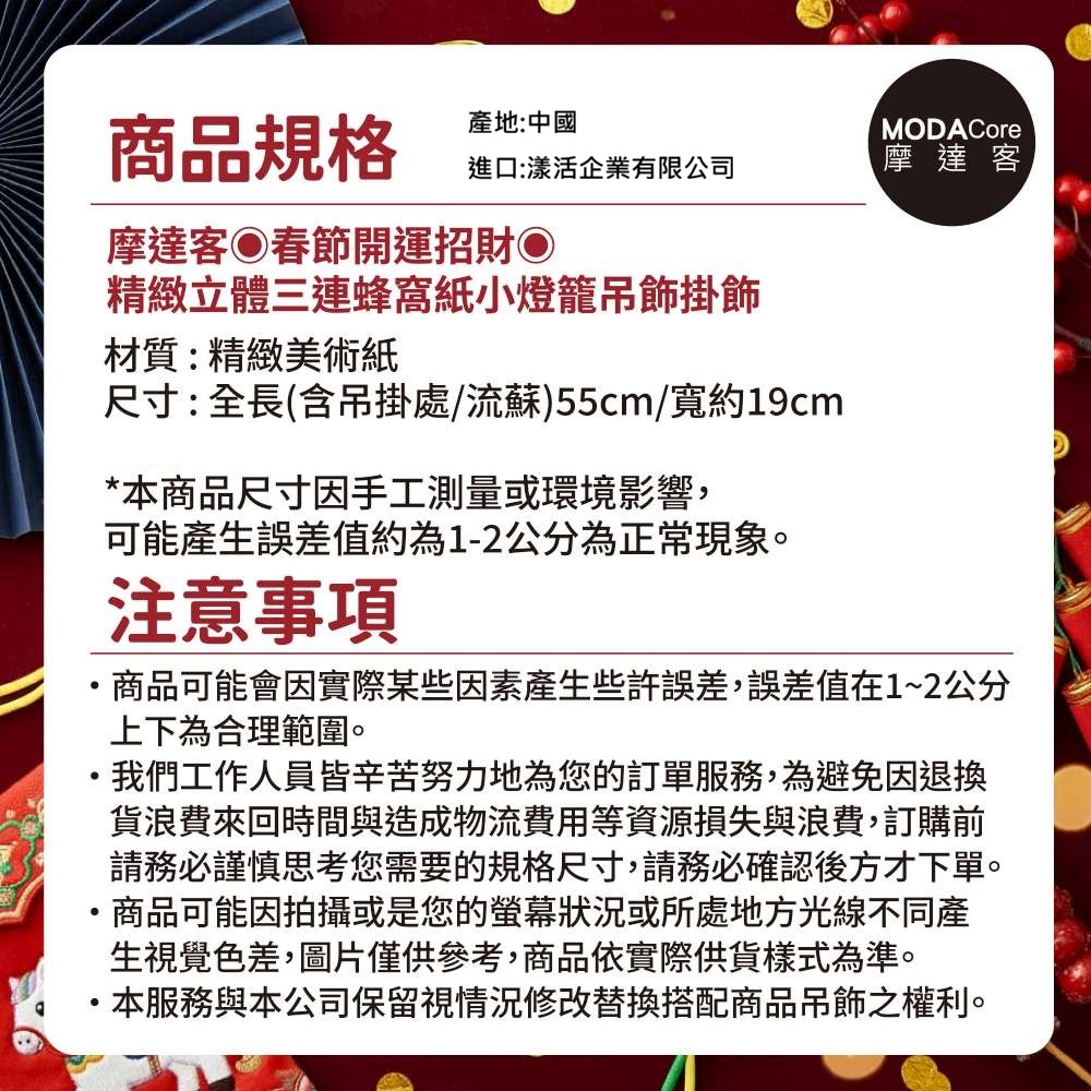 摩達客◉春節開運招財◉精緻立體三連蜂窩紙小燈籠吊飾掛飾