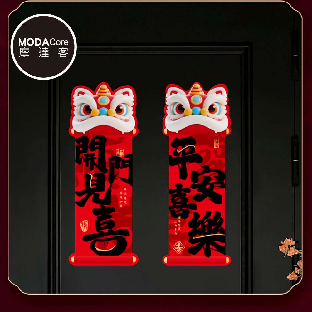 摩達客◉春節開運招財◉平安喜樂開門見喜醒獅磁吸對聯春聯2入組