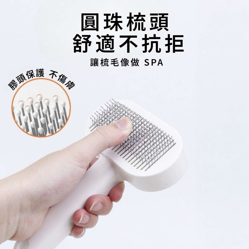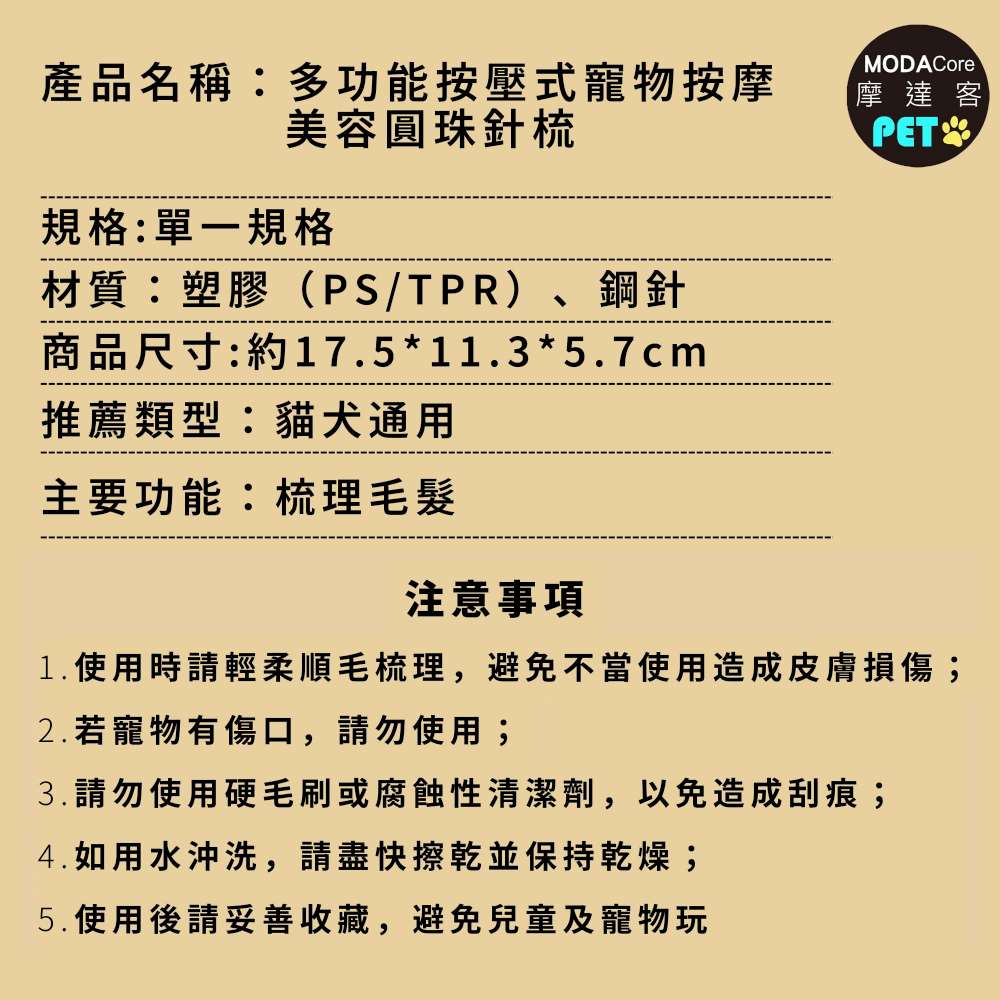 摩達客寵物-多功能按壓式寵物按摩美容圓珠針梳 貓狗適用 寵物梳 浮毛梳 理毛 順毛刷