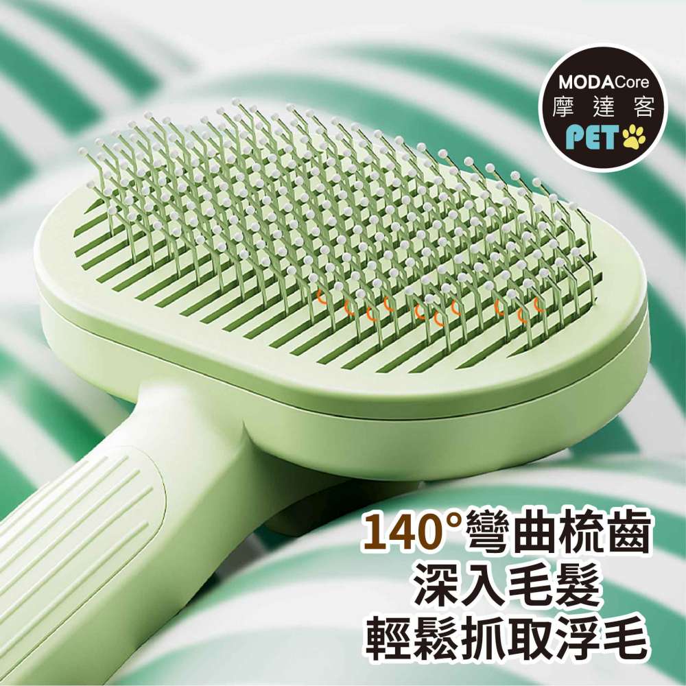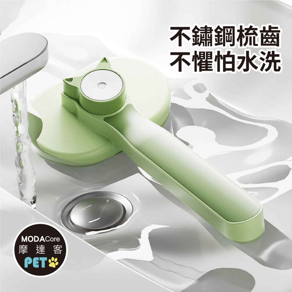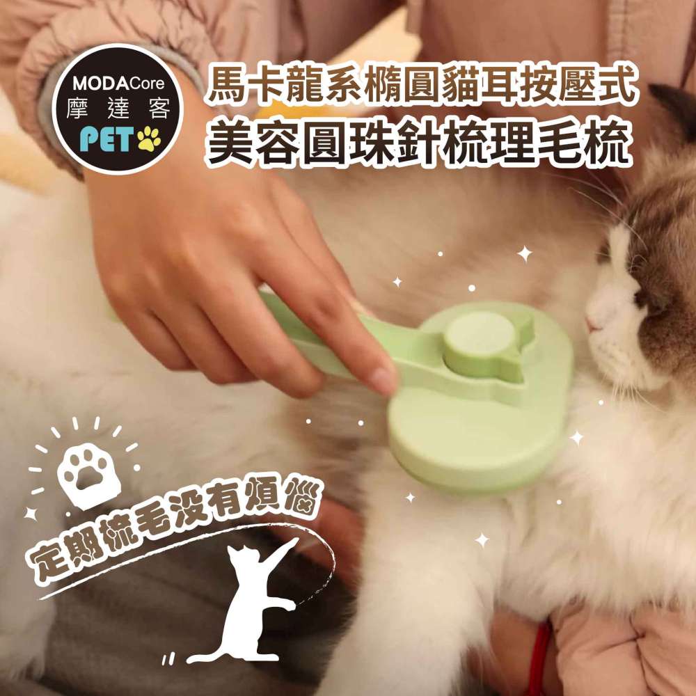 摩達客寵物-馬卡龍系橢圓貓耳按壓式美容圓珠針梳理毛梳-三色可選/寵物梳浮毛梳嚕貓嚕狗紓壓神器貓狗適用