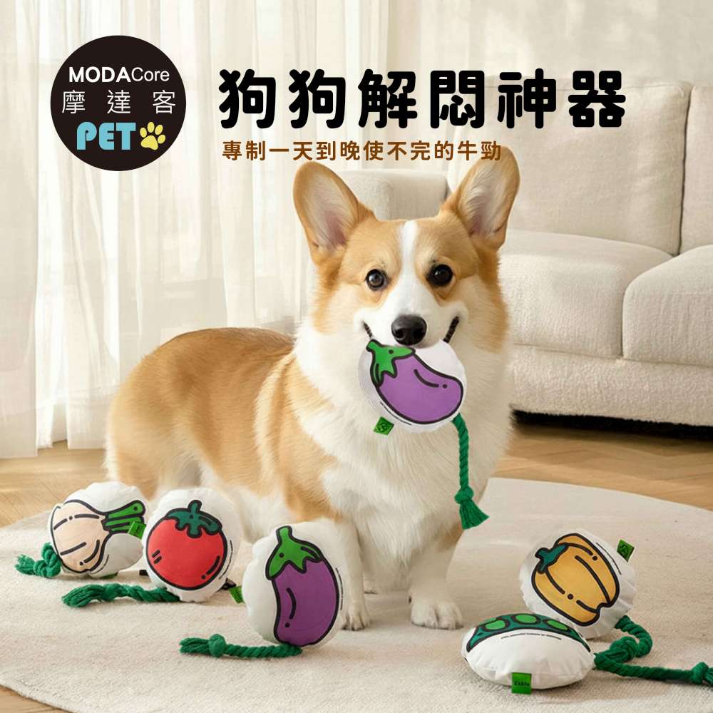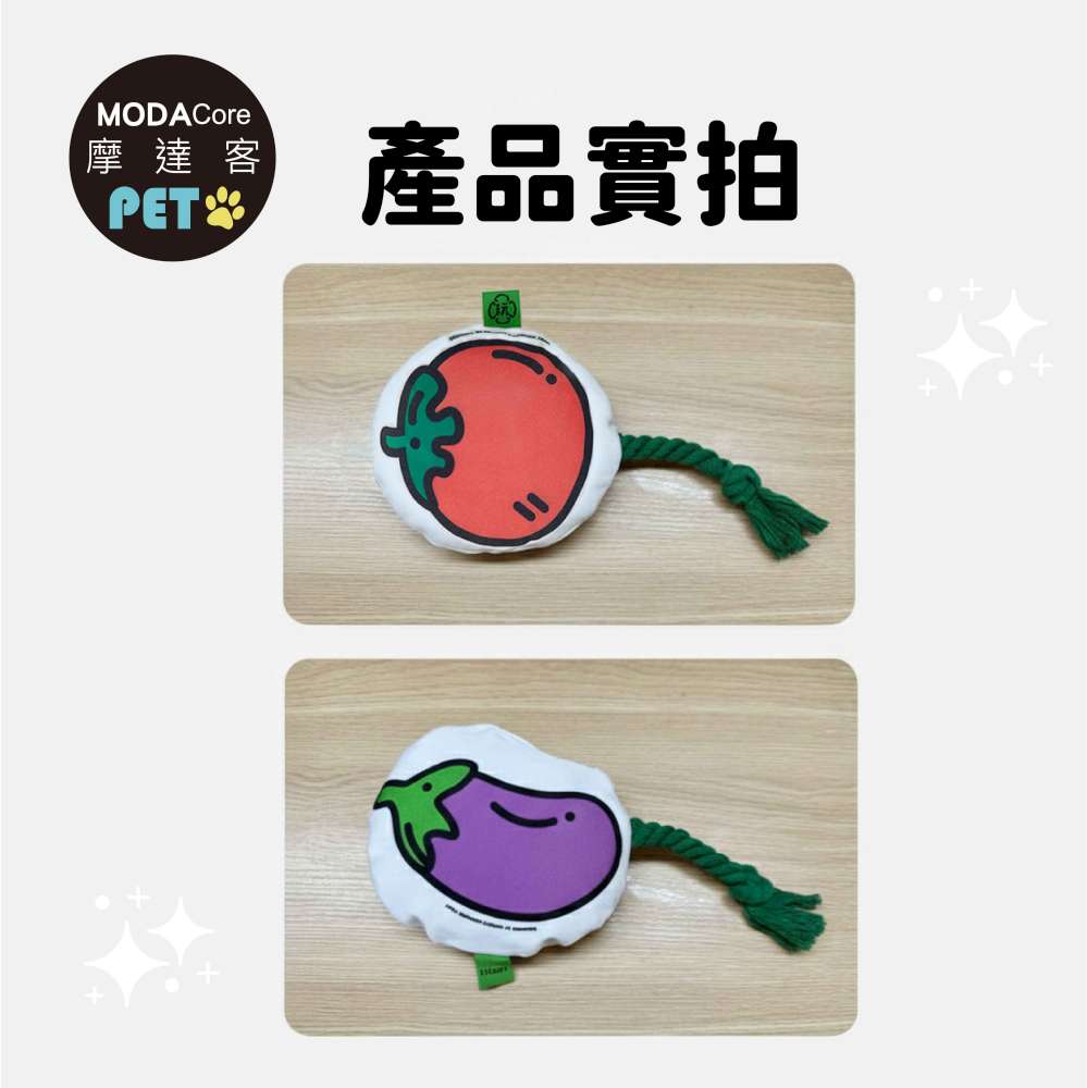 摩達客寵物-棉繩咬咬發聲玩具-茄子與番茄兩入組-狗猫磨牙互動紓壓_陪伴布娃娃自嗨解悶