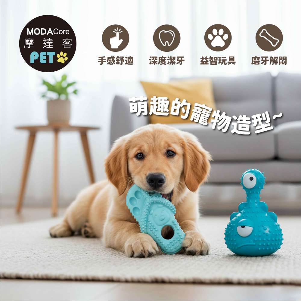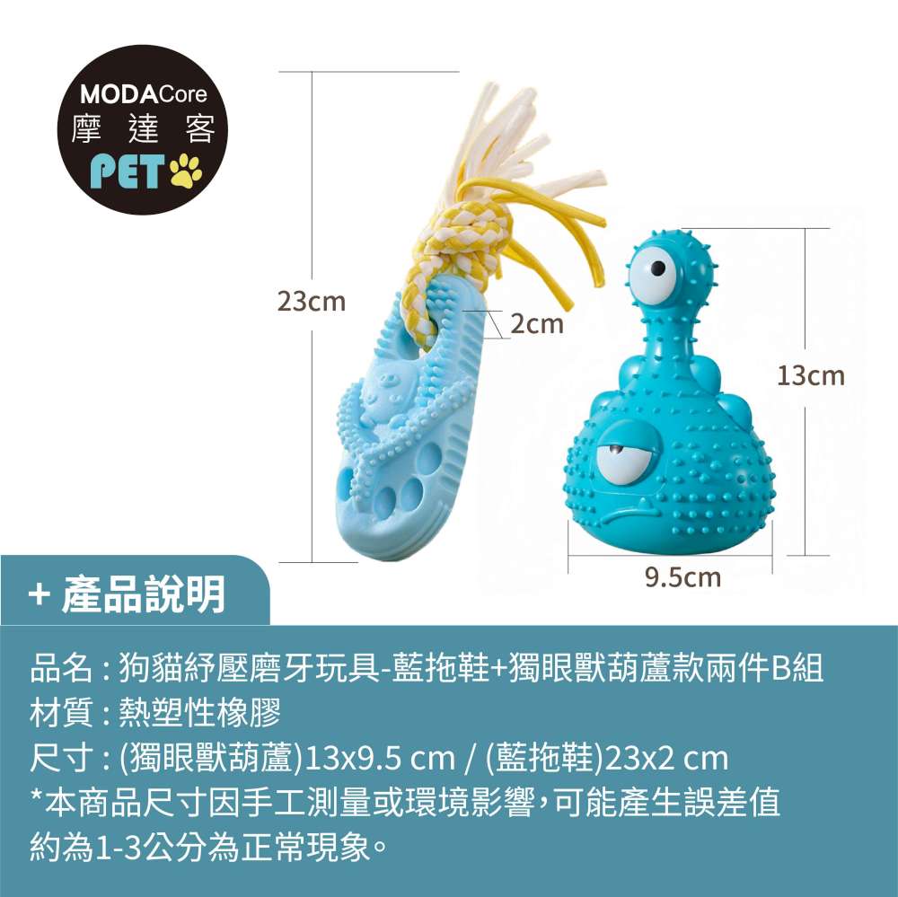 摩達客寵物-狗貓紓壓磨牙玩具-藍拖鞋+獨眼獸葫蘆款兩件B組-潔齒自嗨耐咬解悶寵物玩具