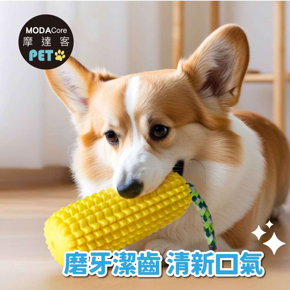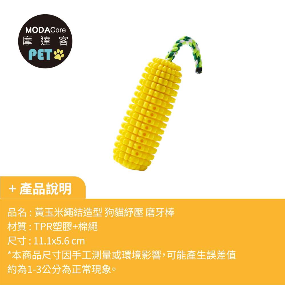 摩達客寵物-黃玉米繩結造型狗貓紓壓磨牙棒發聲玩具漏食設計_寵物自嗨互動趣味耐咬