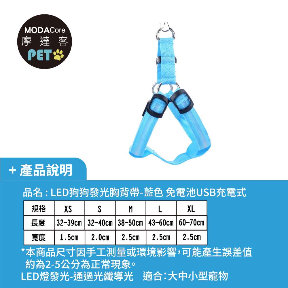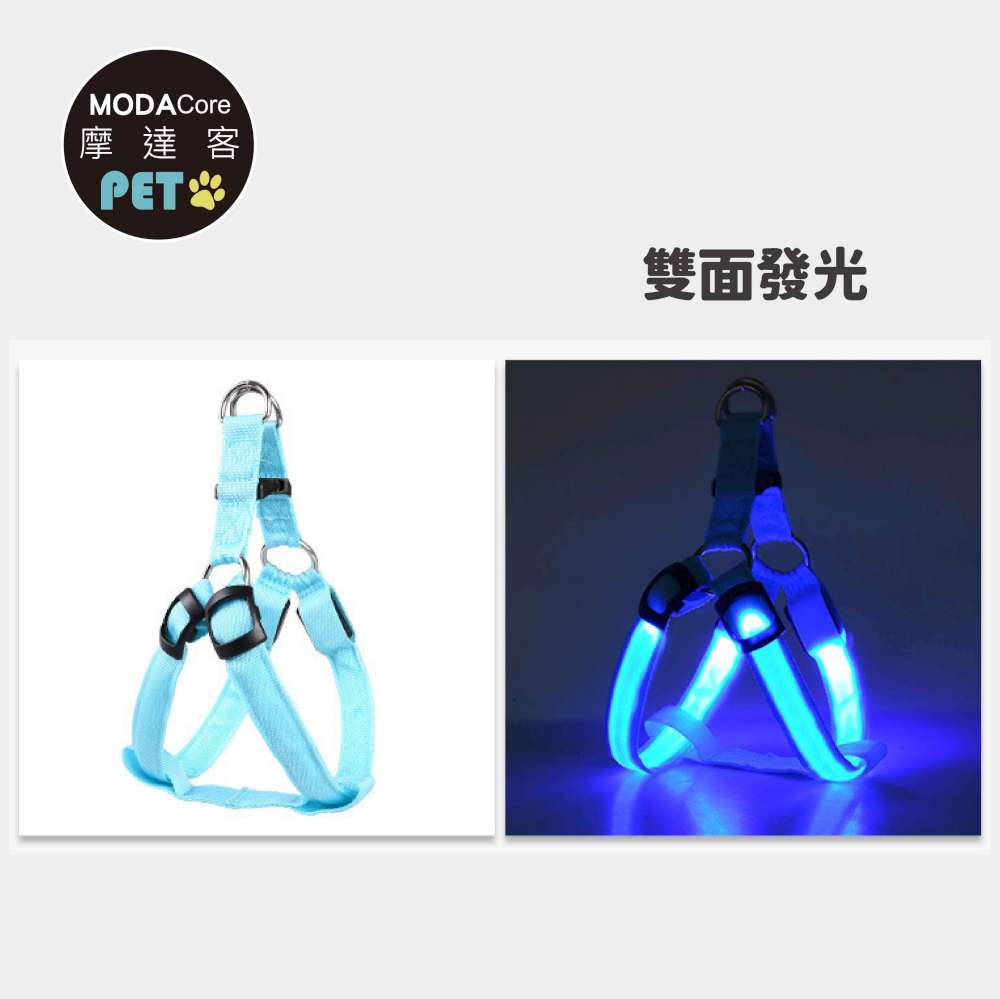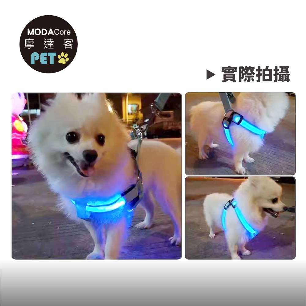 摩達客寵物-LED狗狗發光胸背帶 夜間遛狗 免電池USB充電式 兩色多尺寸 保護防撞防走失