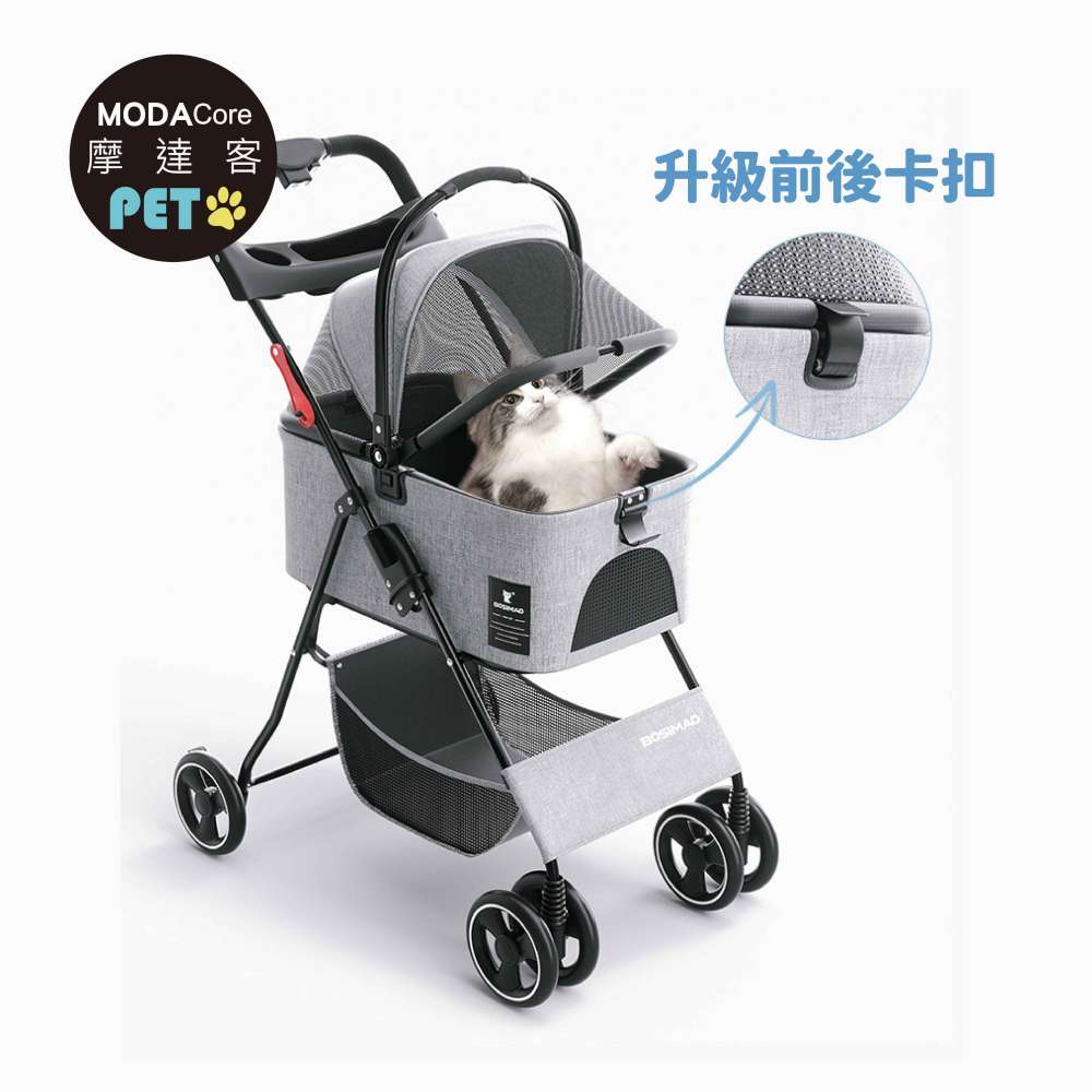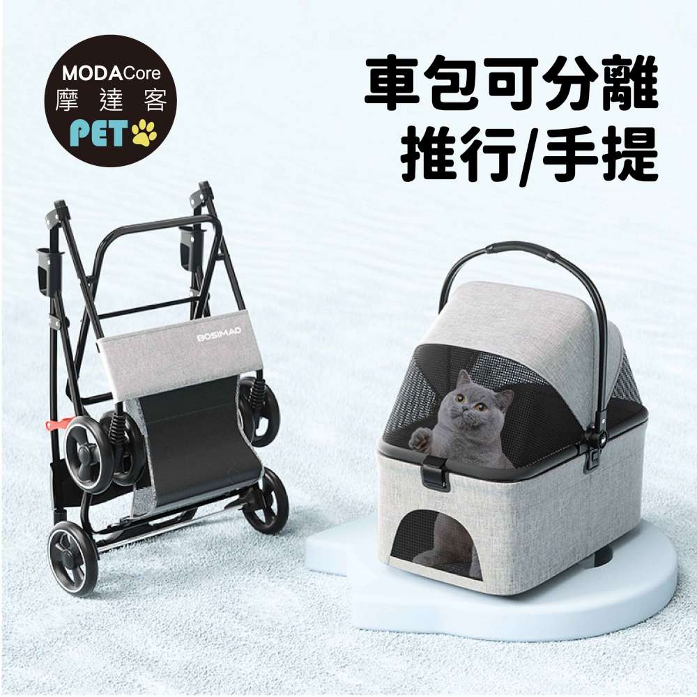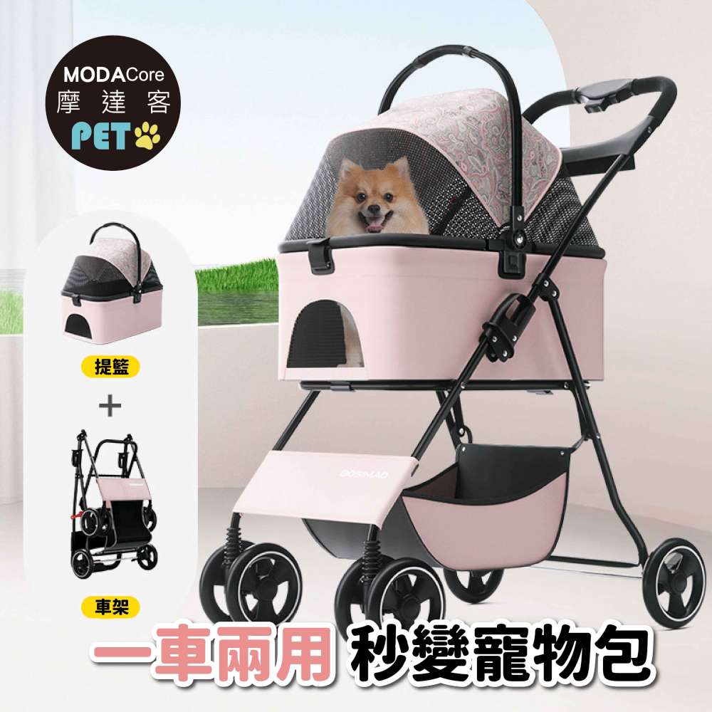 摩達客-歐日風尚輕巧分離式手提座艙摺疊寵物推車/溫柔粉紅款/15KG以下猫狗適用