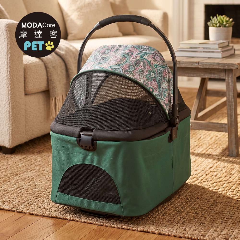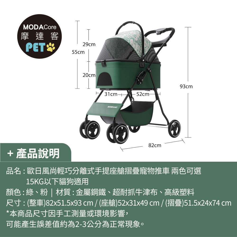 摩達客-歐日風尚輕巧分離式手提座艙摺疊寵物推車/環保綠款/15KG以下猫狗適用