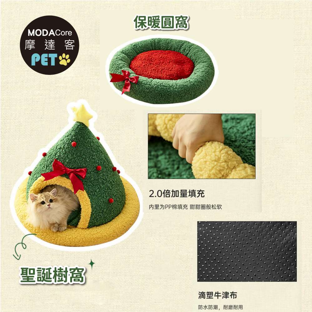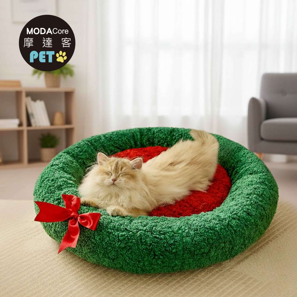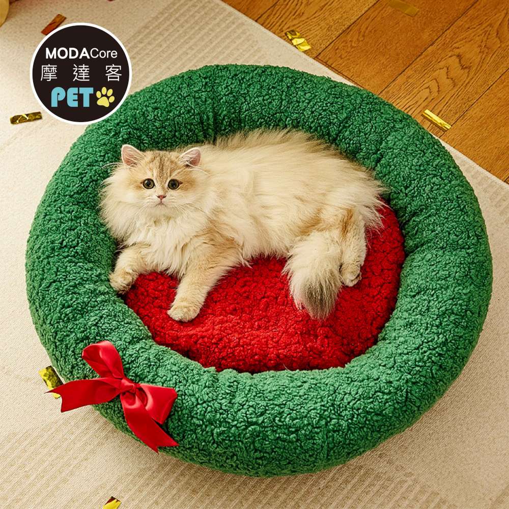 摩達客寵物-綠紅聖誕花圈保暖造型氛圍感貓窩狗窩-S號-保暖加厚氛圍感寵物墊